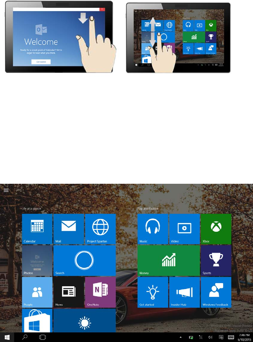 In start screen, slide from the top of the screen In start screen, slide finger up and down