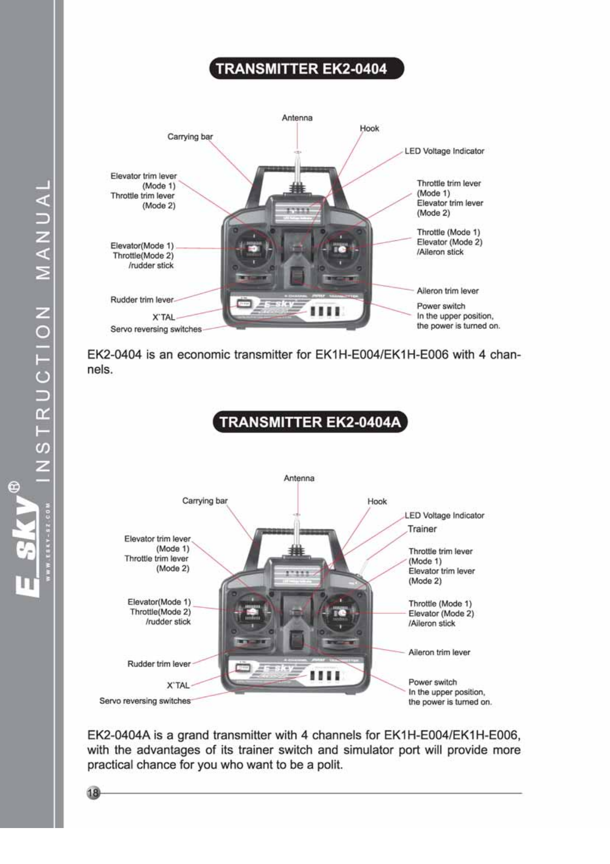 ShenZhen Esky Trade ESKYSZ05 6 Channels Pistol Grip Transmitter User Manual