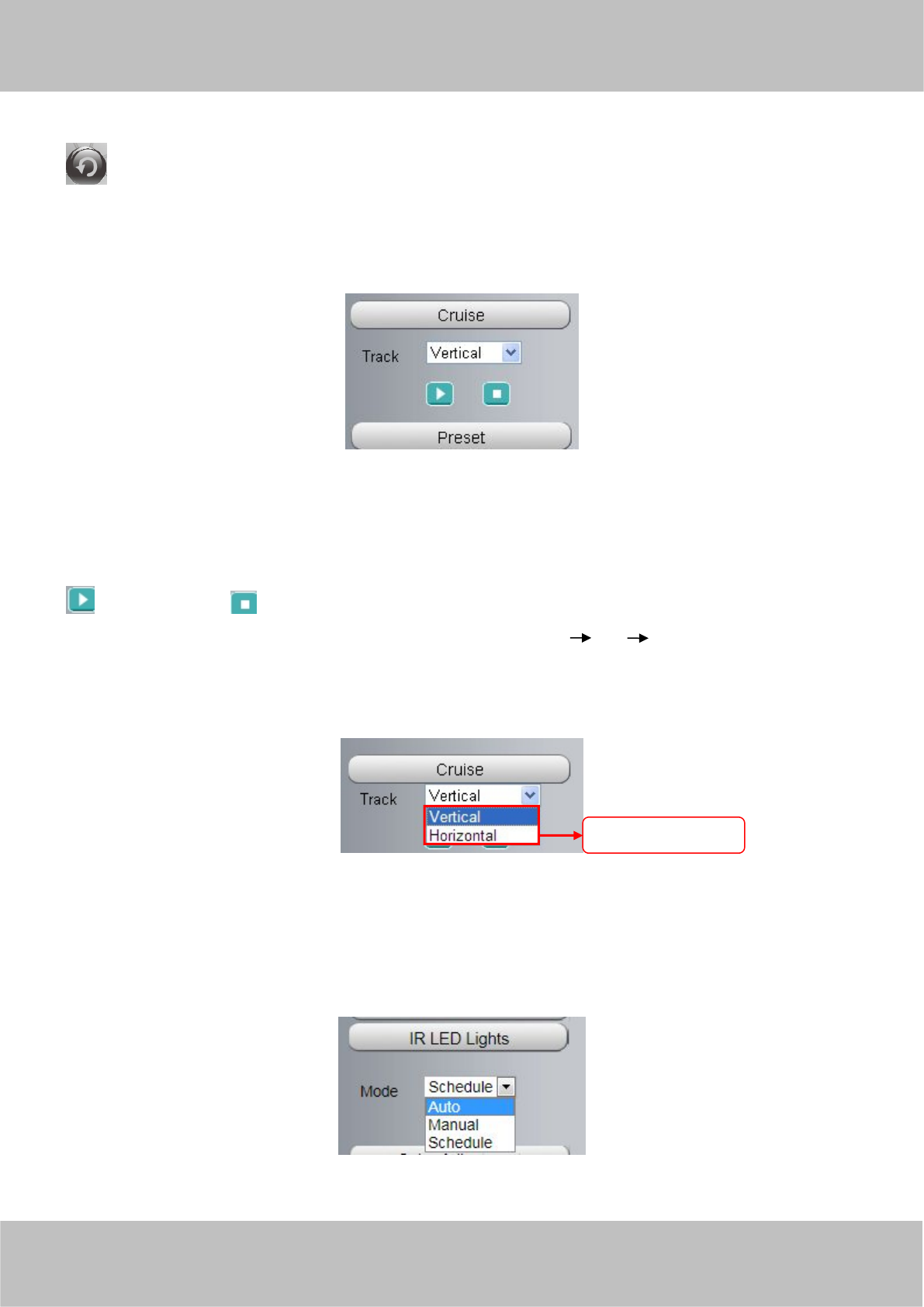 On this page you can set the schedule time for switching IR LED lights. When parameter Mode is set to the