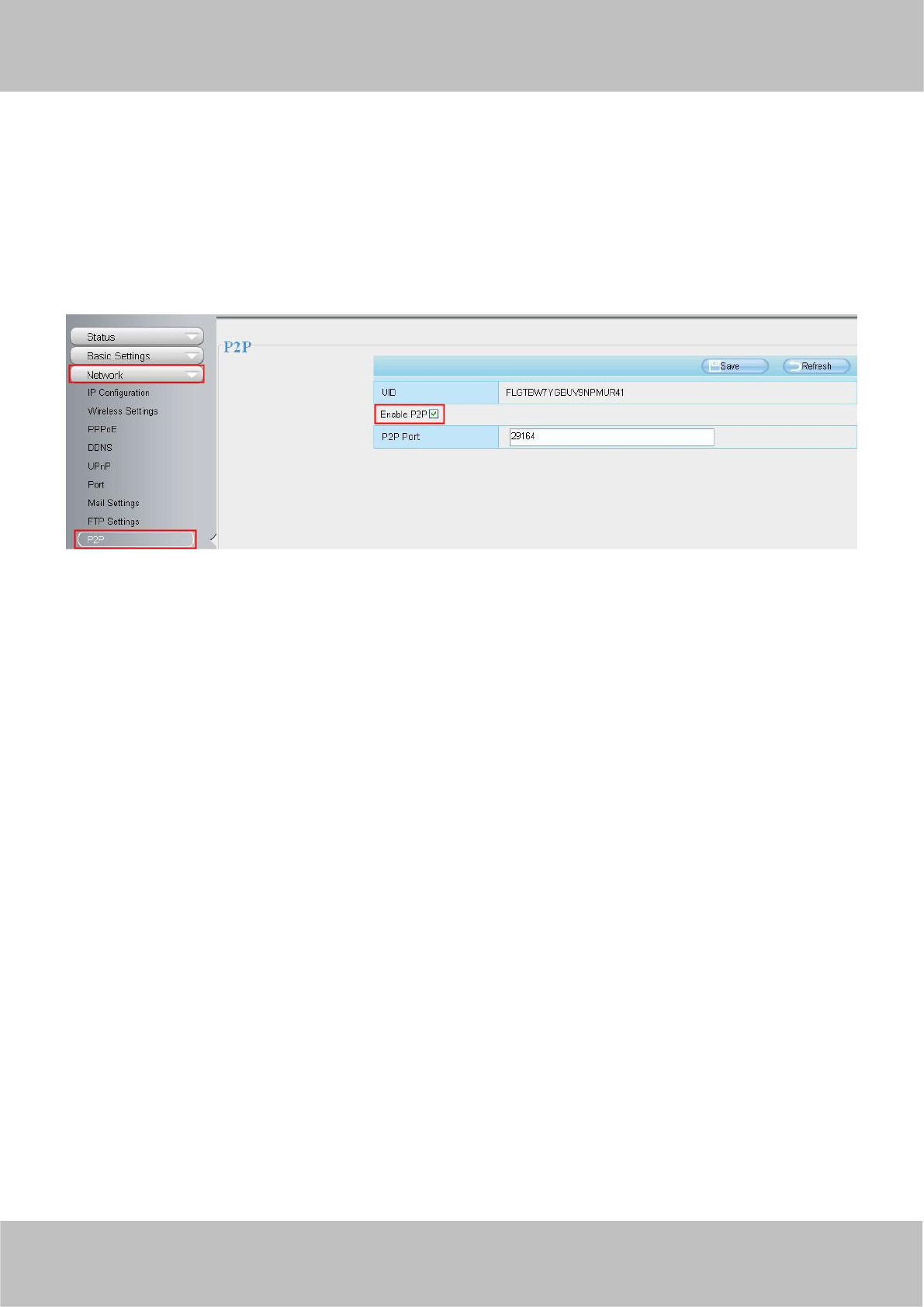 First of all, you need to open the P2P function of the camera at “Settings-->Network-->P2P.”