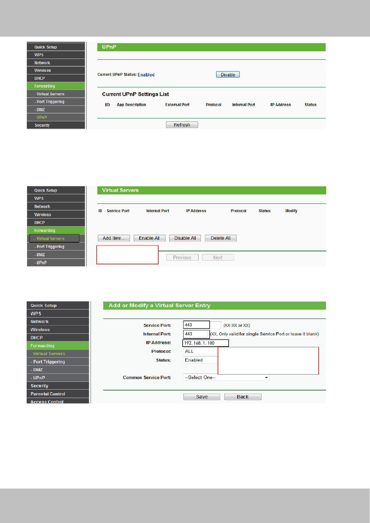 Choose “Forwarding > UPnP”, make sure that the Current UPnP Status is Enabled.