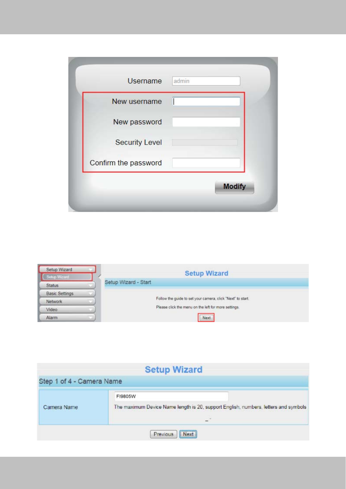 When setting up your camera for the first time, it will request that you modify the default username and/or