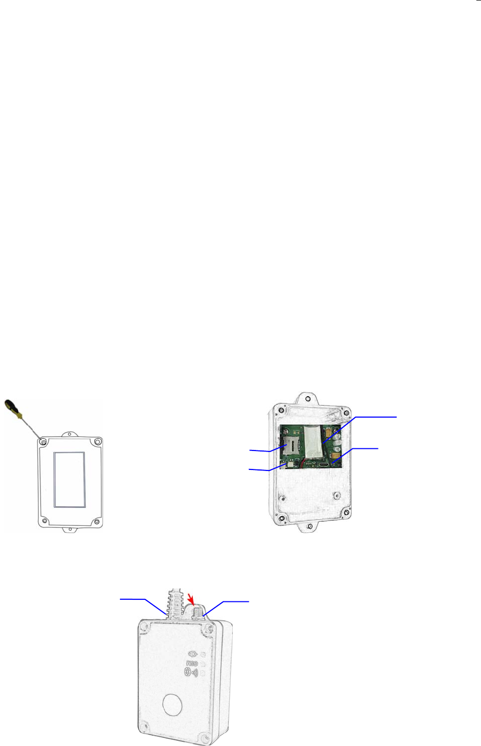 1、Unscrew the back cover of the device. 2、Install the SIM card, insert the battery cable,