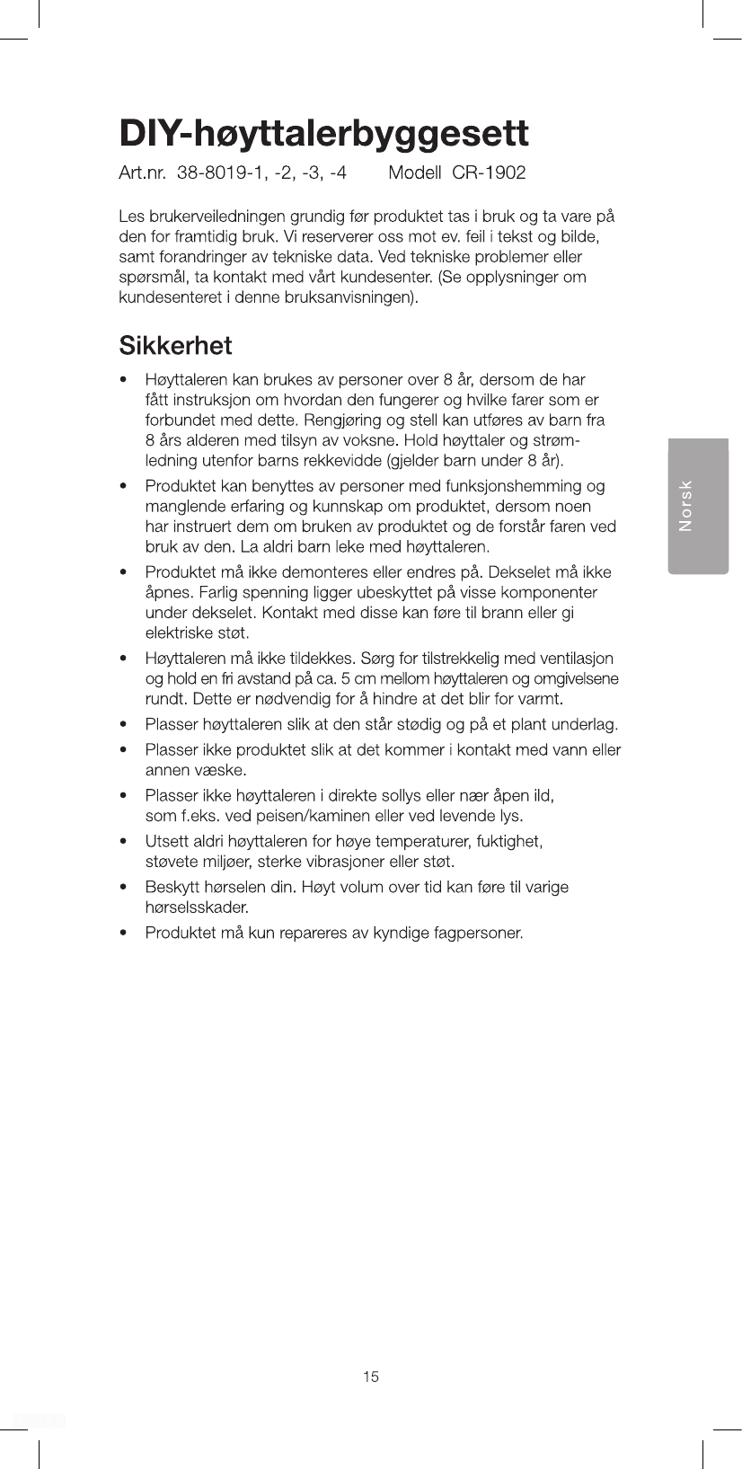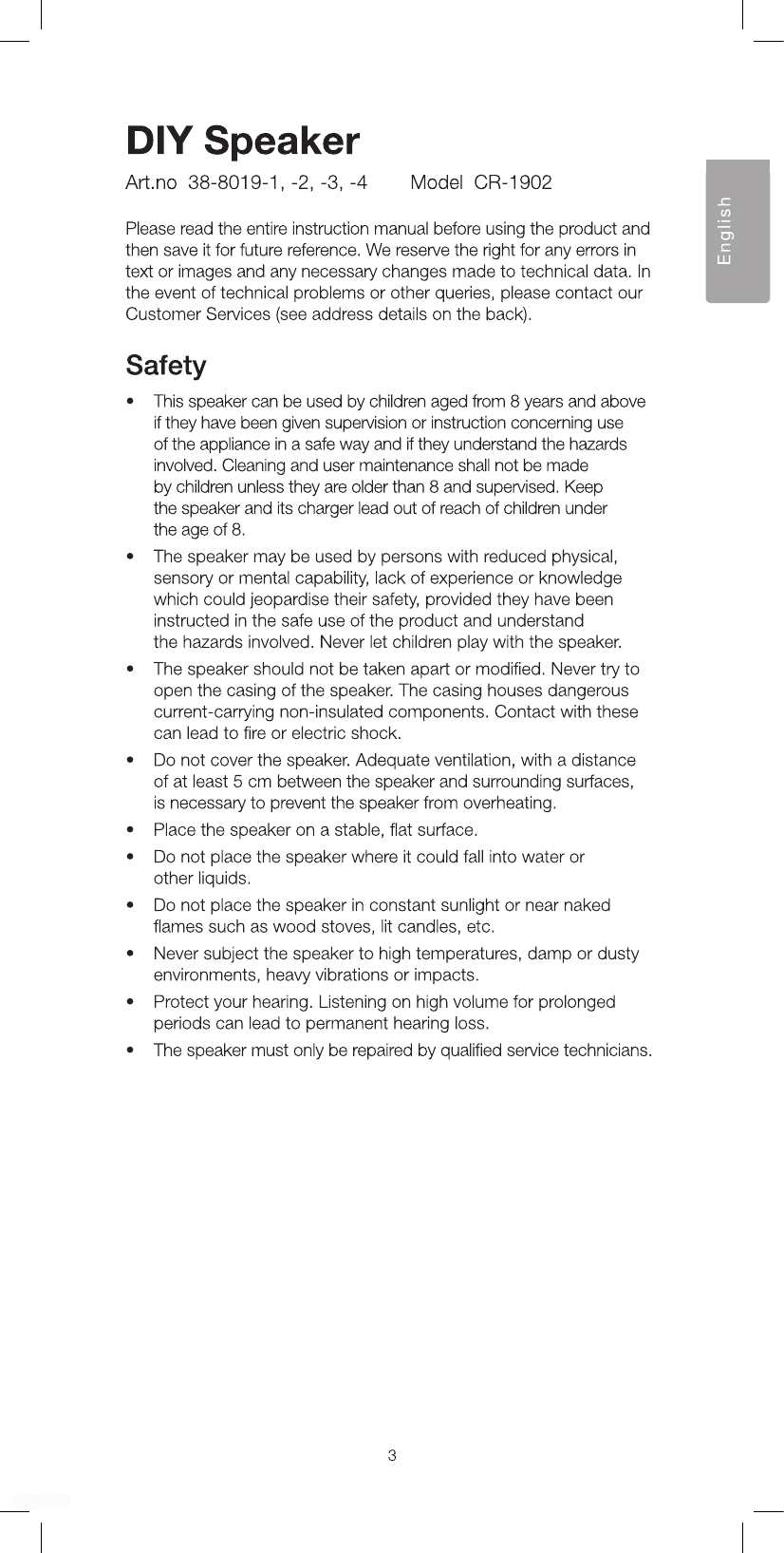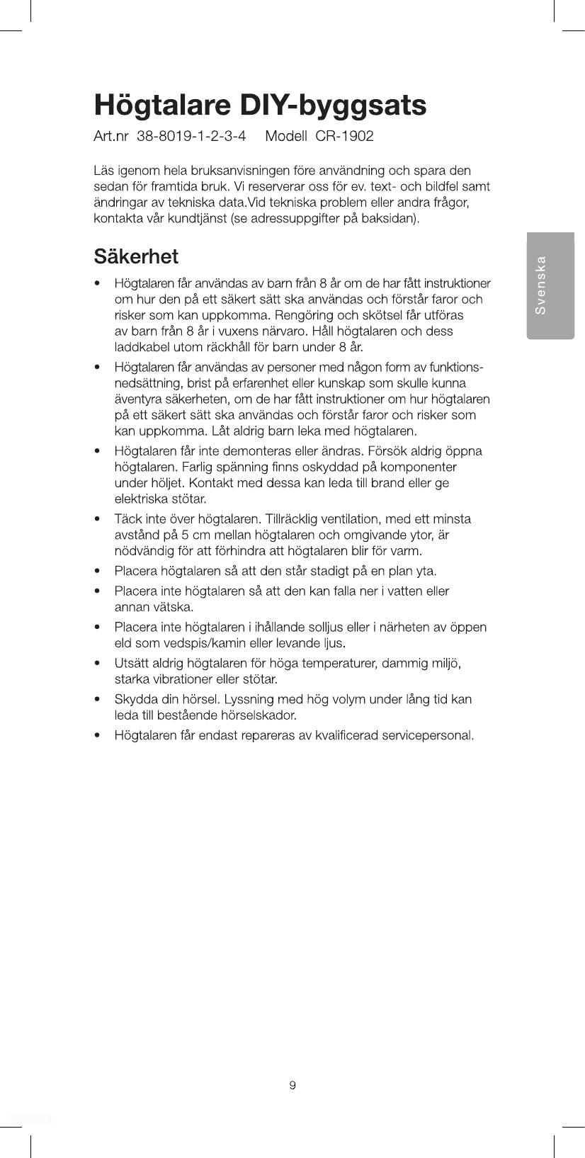 ShenZhen Super Global Electronics CR-1902 DIY Speaker User Manual