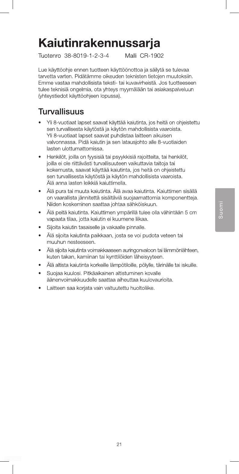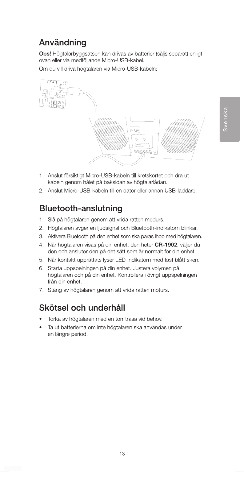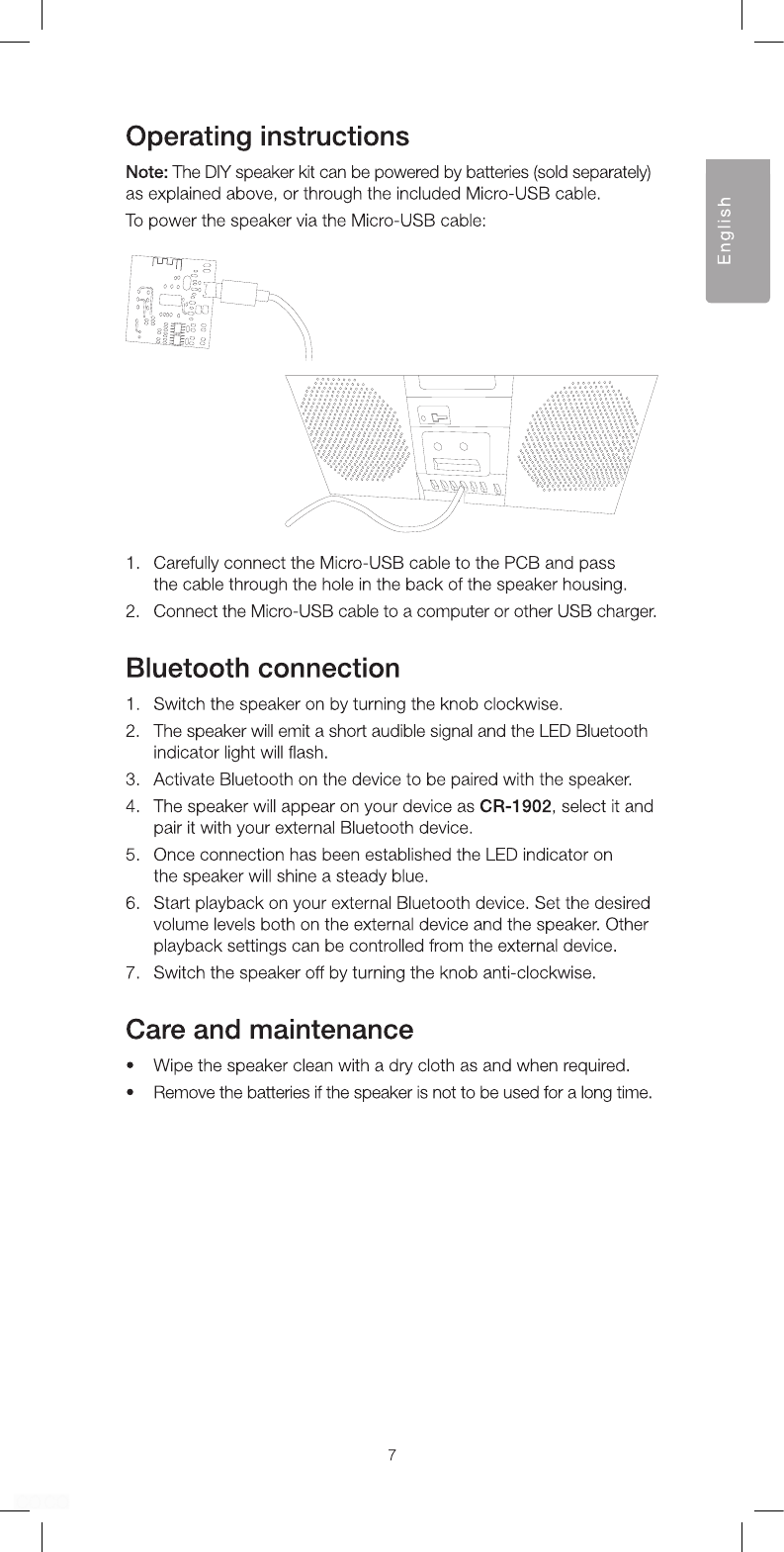 ShenZhen Super Global Electronics CR-1902 DIY Speaker User Manual