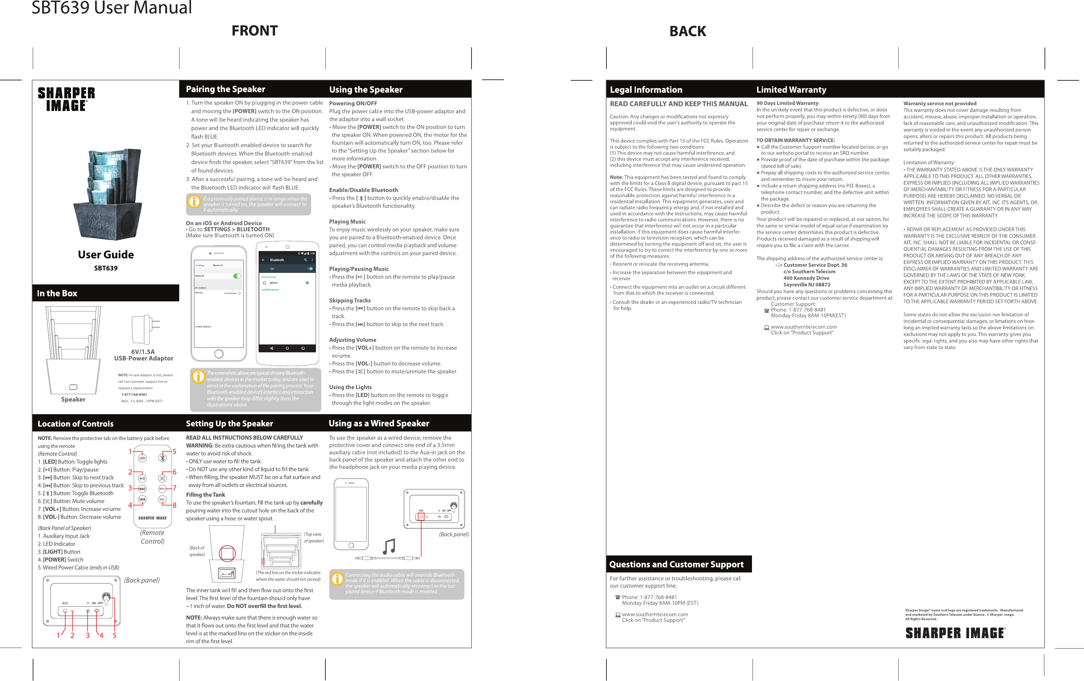 ShenZhen Super Global Electronics SBT639 Bluetooth speaker User Manual Users manual