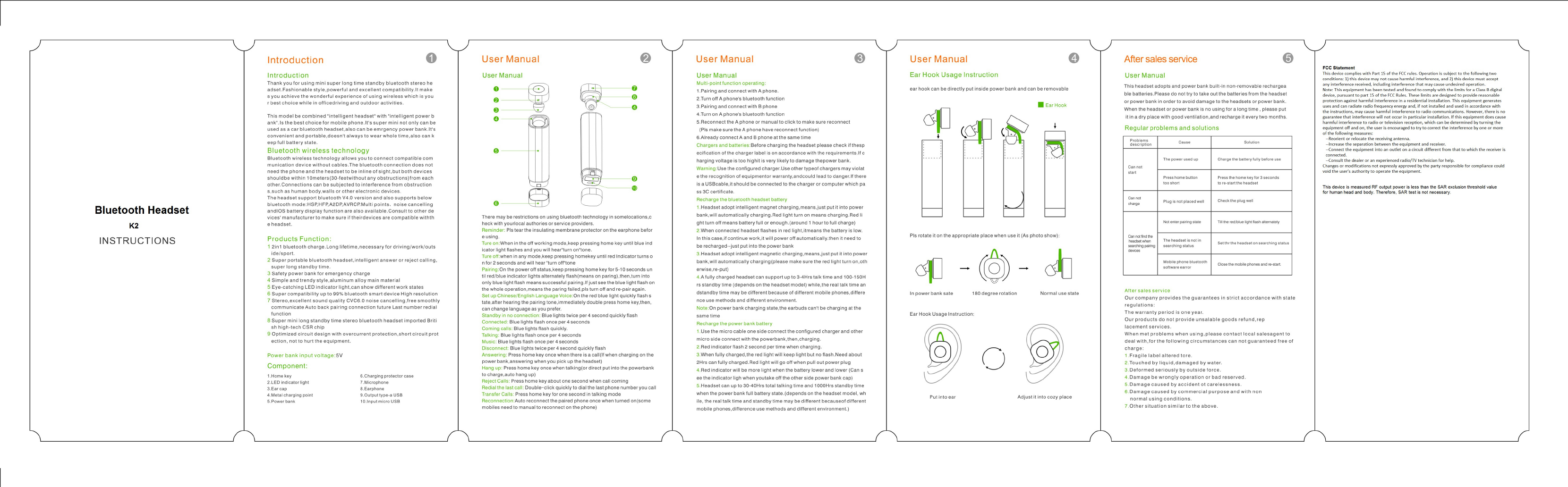 ShenZhen Tadpole Design K2 Bluetooth Headset User Manual