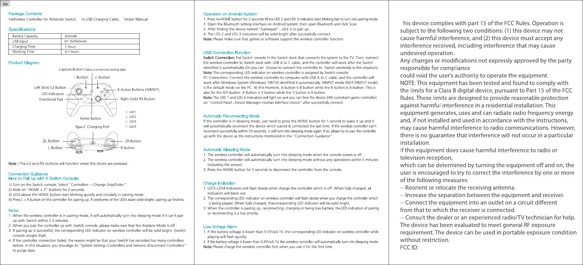 ShenZhen Targetever Technology Co.,Ltd. Bluetooth Controller for Switch Users Manual