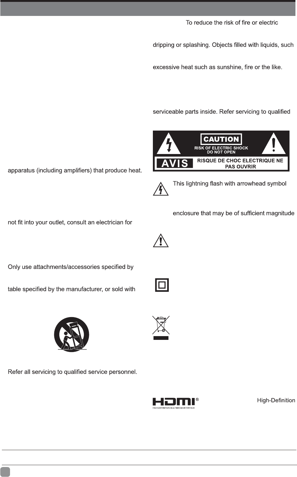 moisture. The apparatus should not be exposed to