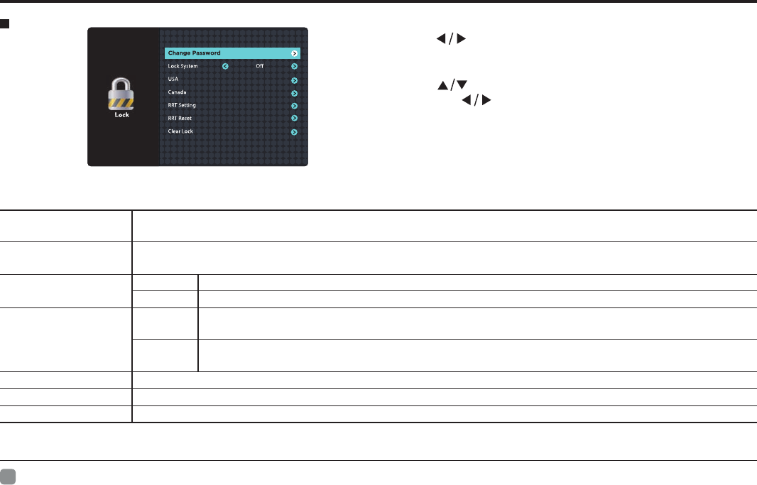 Lost password • Select the SET Password setting in the LOCK menu, then enter the following master password “8899”. The master