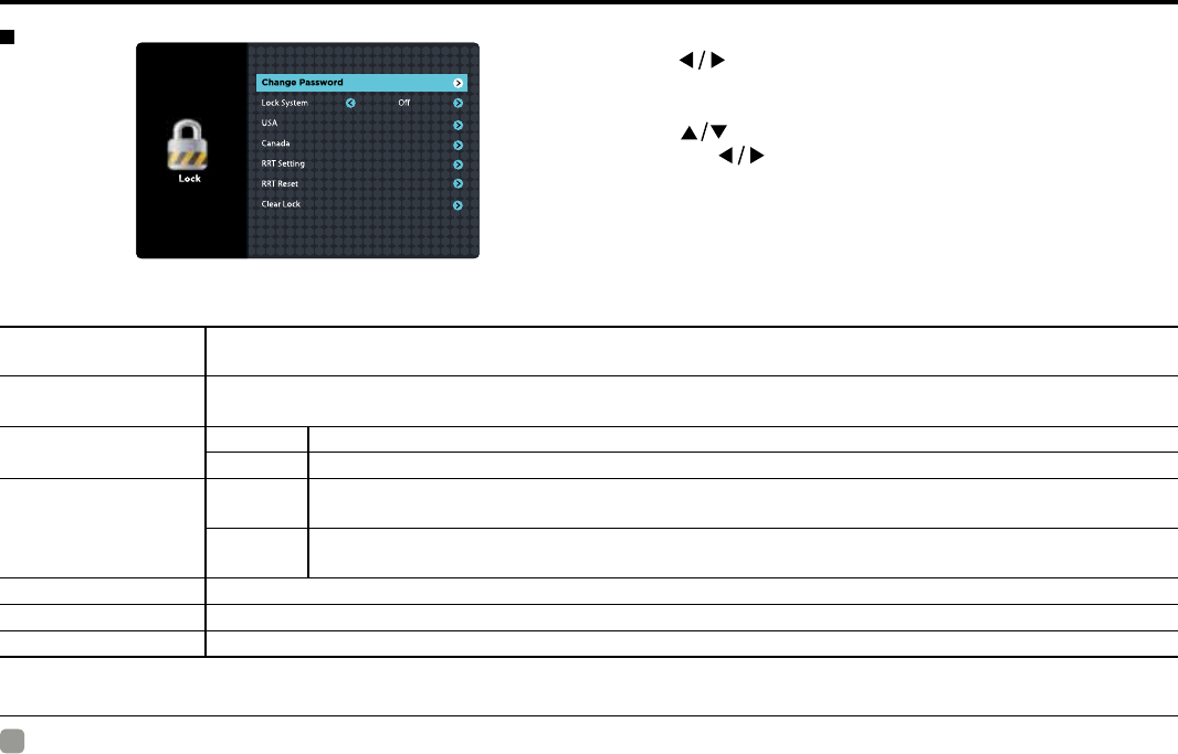 Lost password • Select the SET Password setting in the LOCK menu, then enter the following master password “8899”. The master