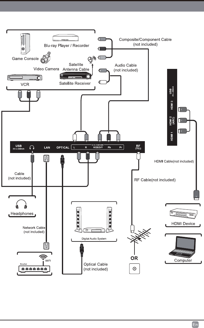 Audio noise • Keep the RF coaxial cable away from the other connected cables.