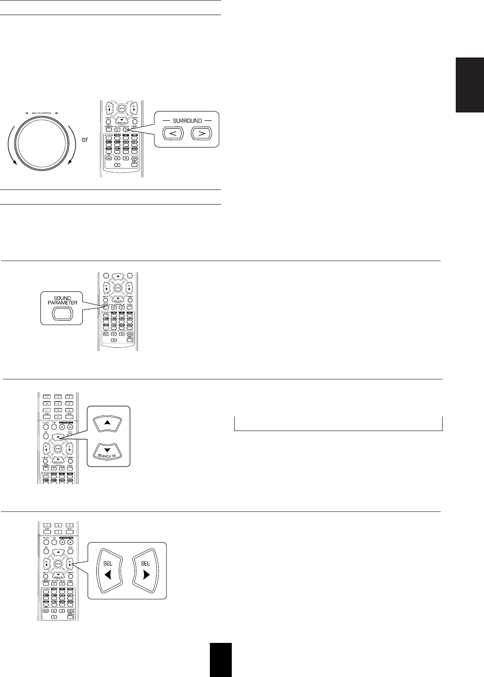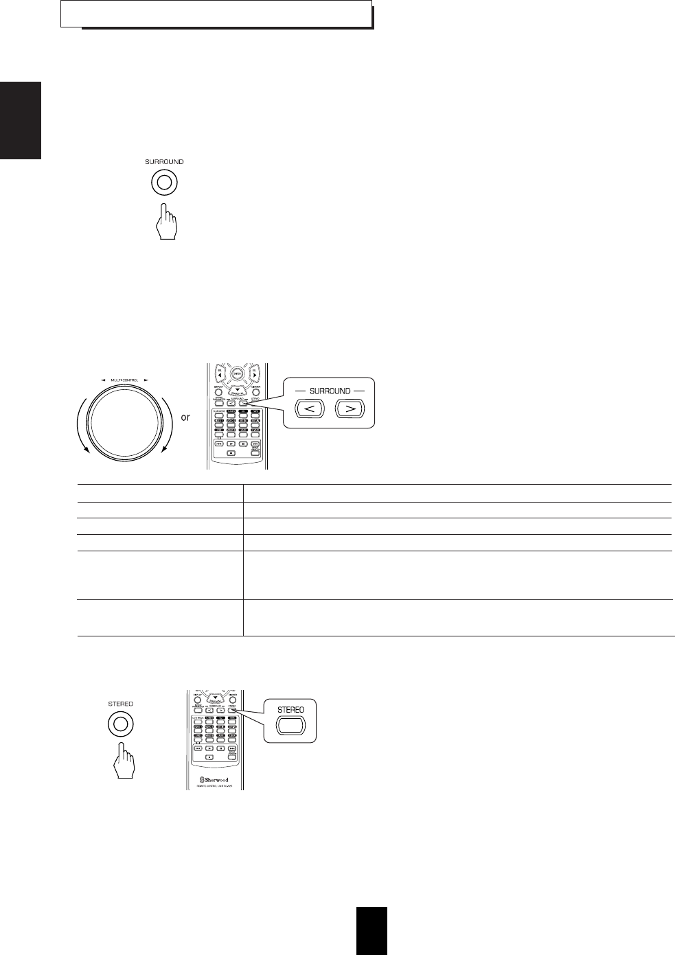 • Adjust master volume and surround level.
