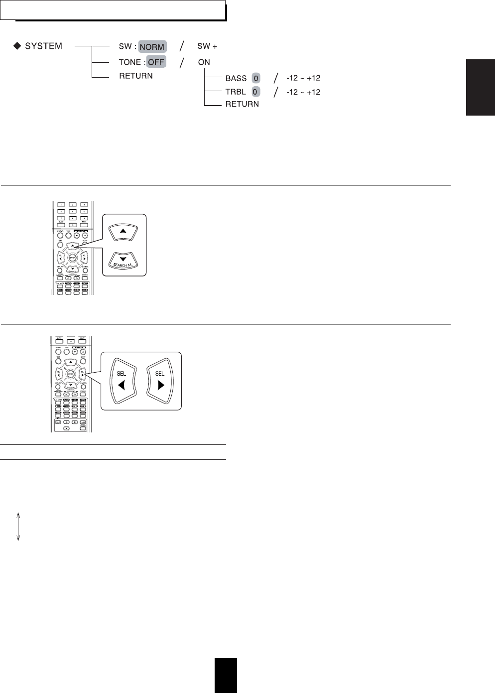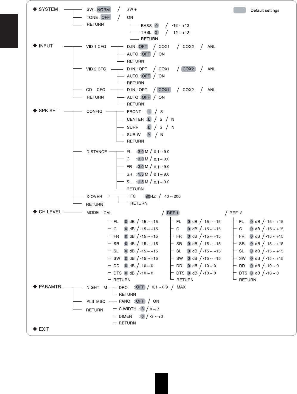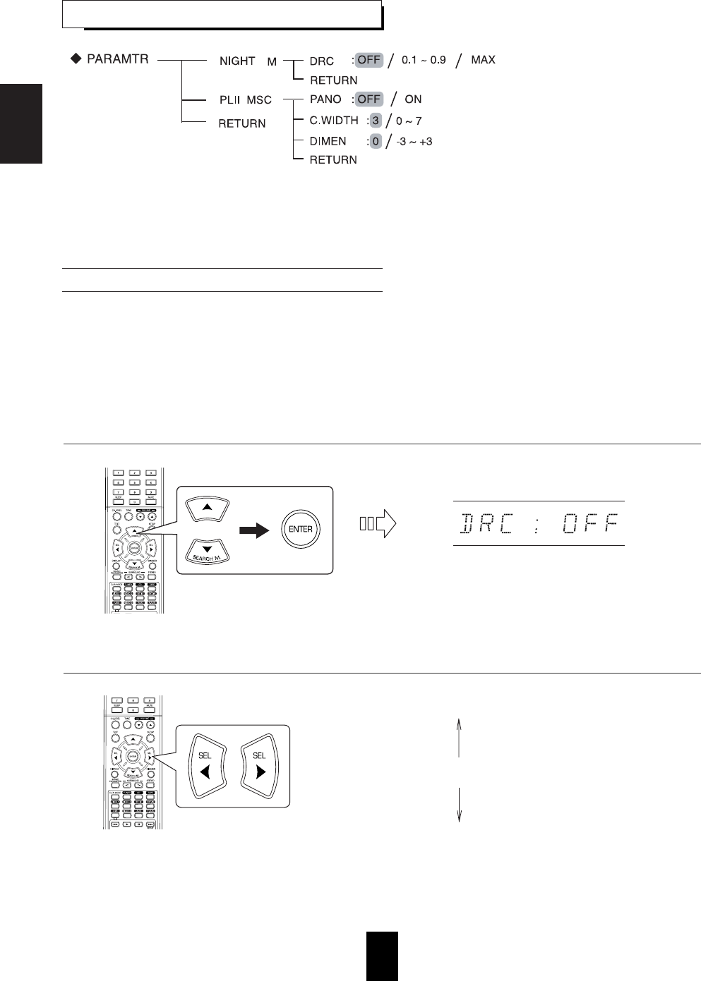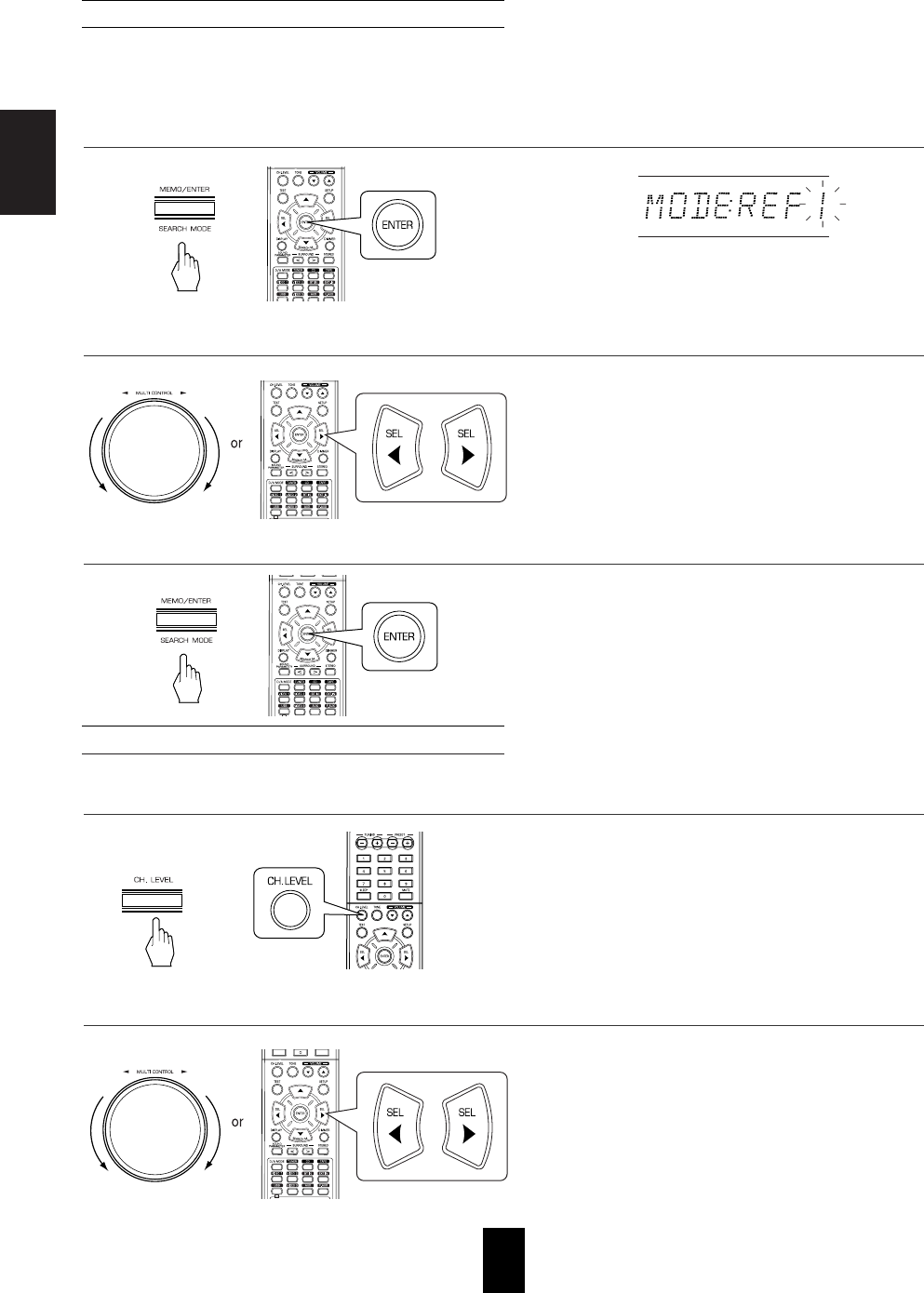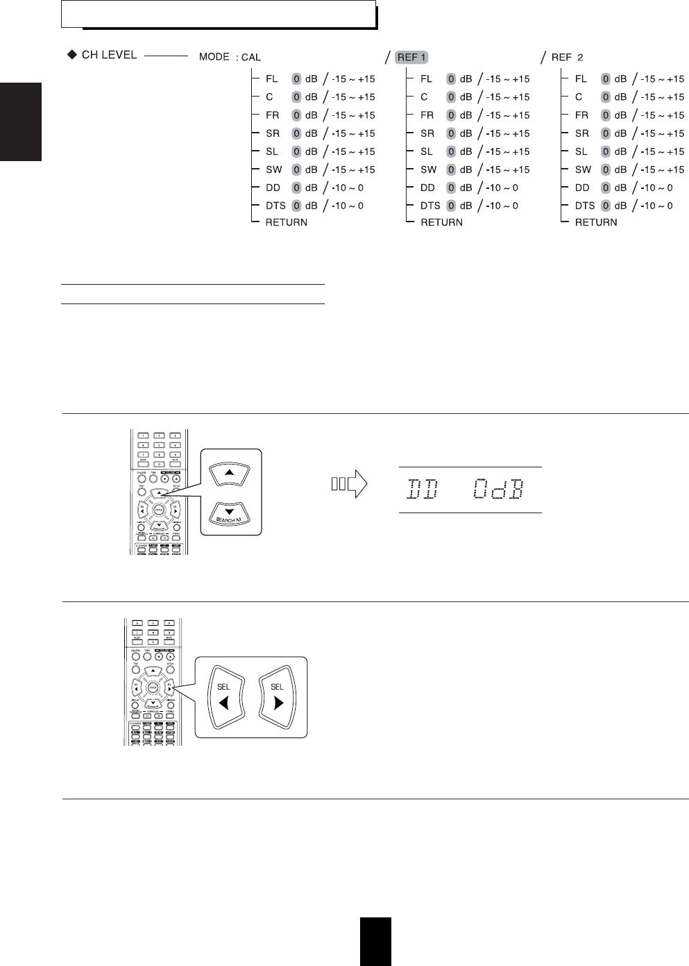 • Adjust master volume and center level.