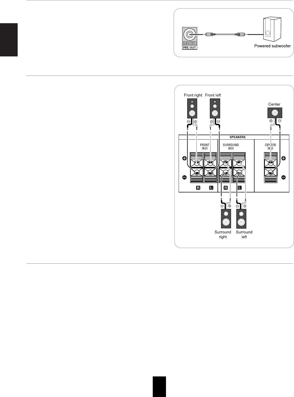 PRE OUT (Subwoofer), 1 kΩ........................................................................................................................................ 1.0 V