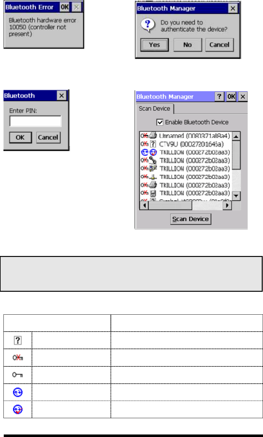Figure 3-27 Bluetooth Error Windows Figure 3-28 Bluetooth Manager Windows