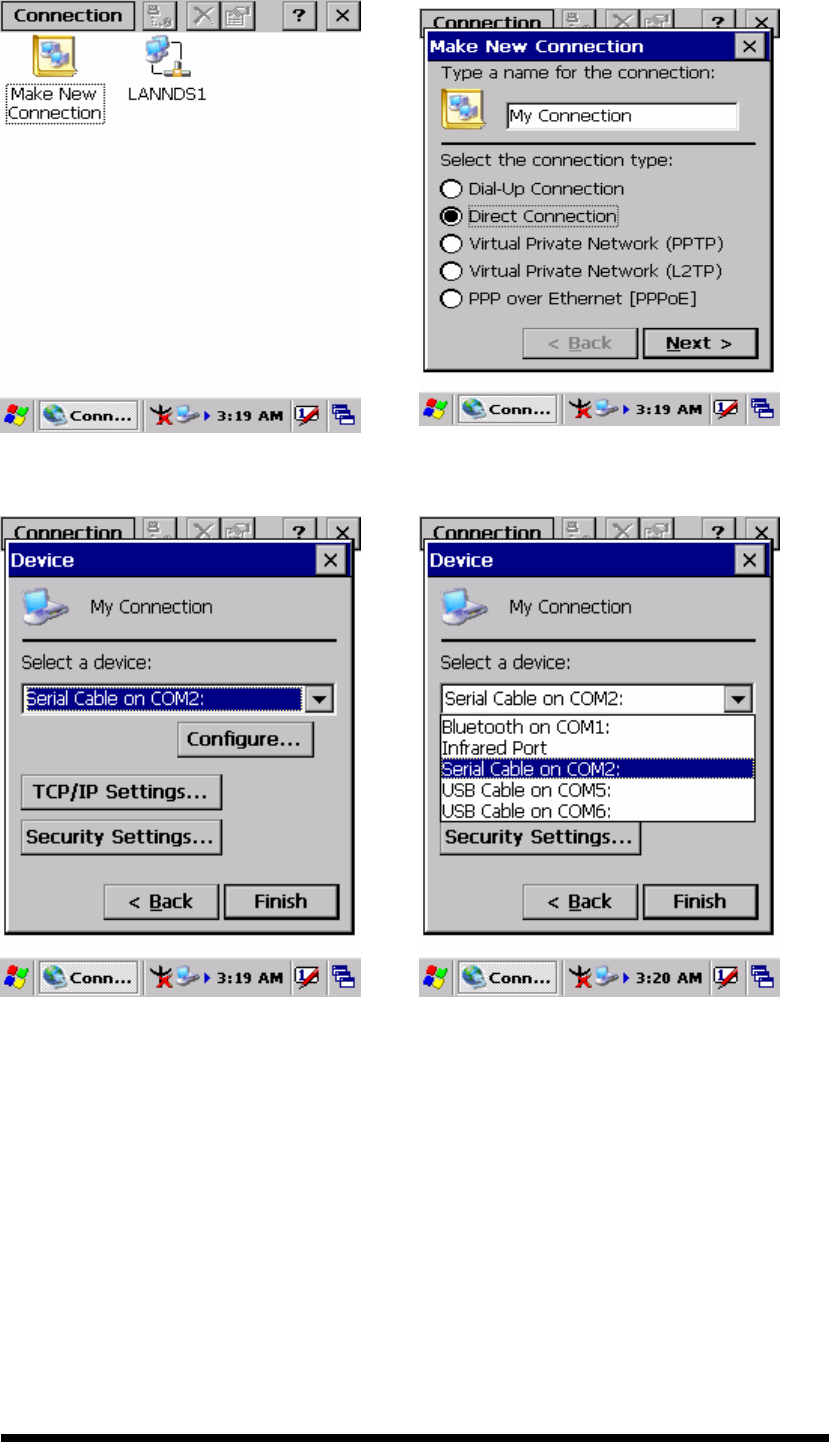 entry screens shown previously for "standard" connection.