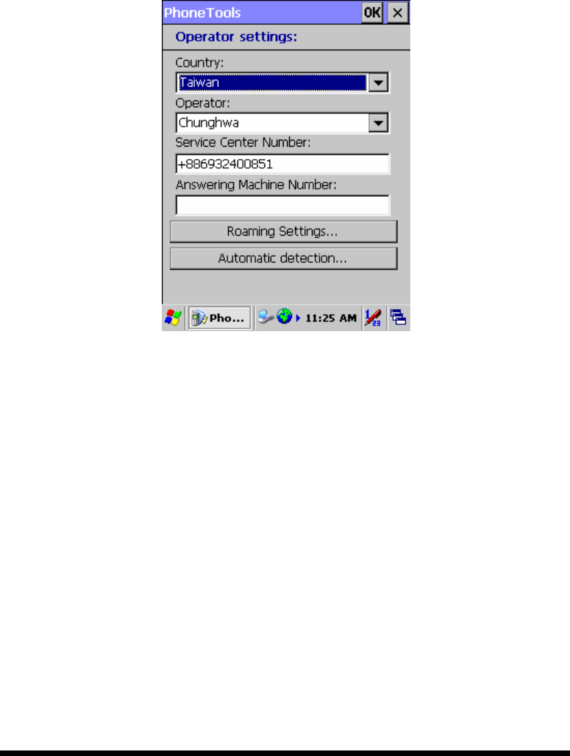 The Roaming Settings button allows you to detect and select a wireless operator