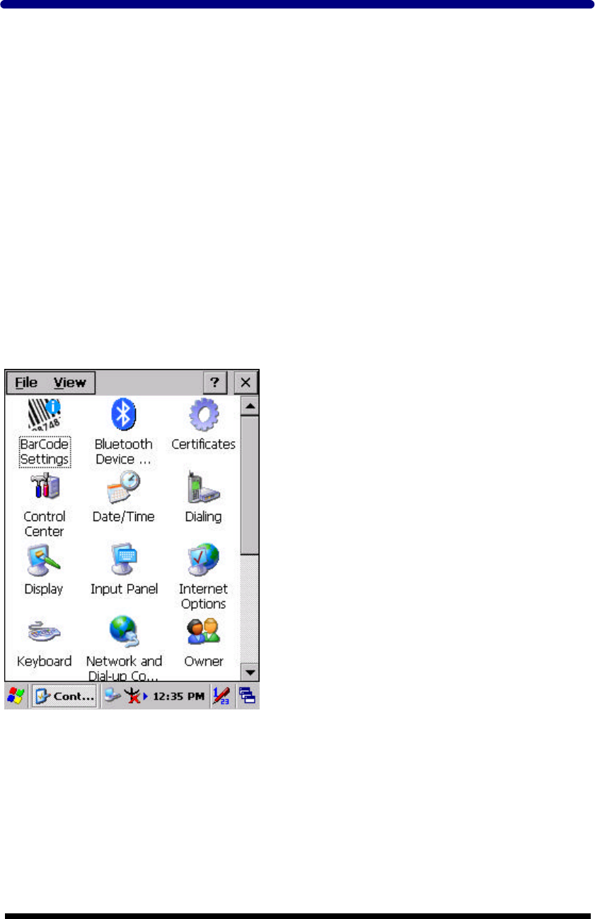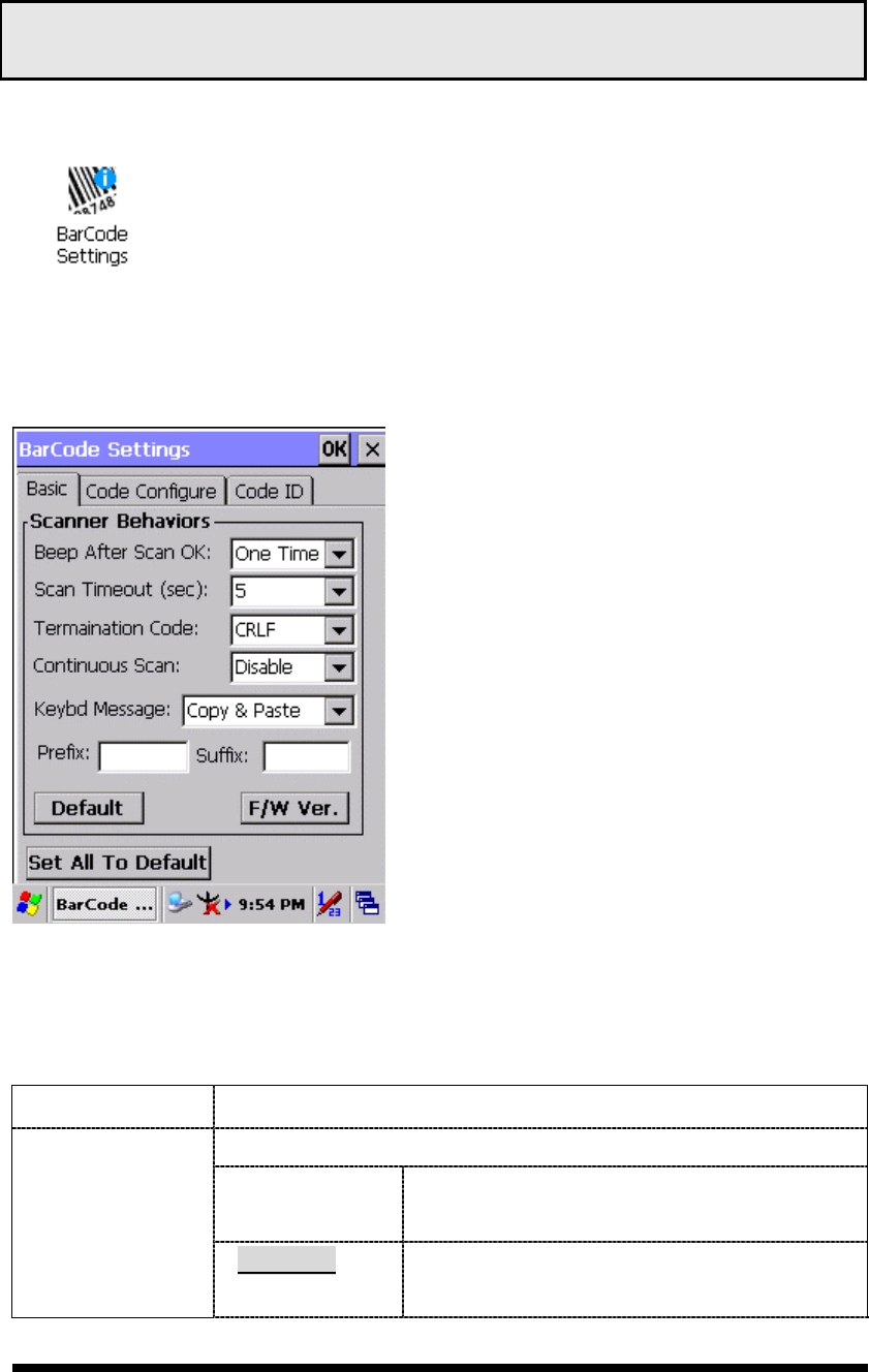 2. Select Start > Setting > Control Panel > Barcode Setting; complete all