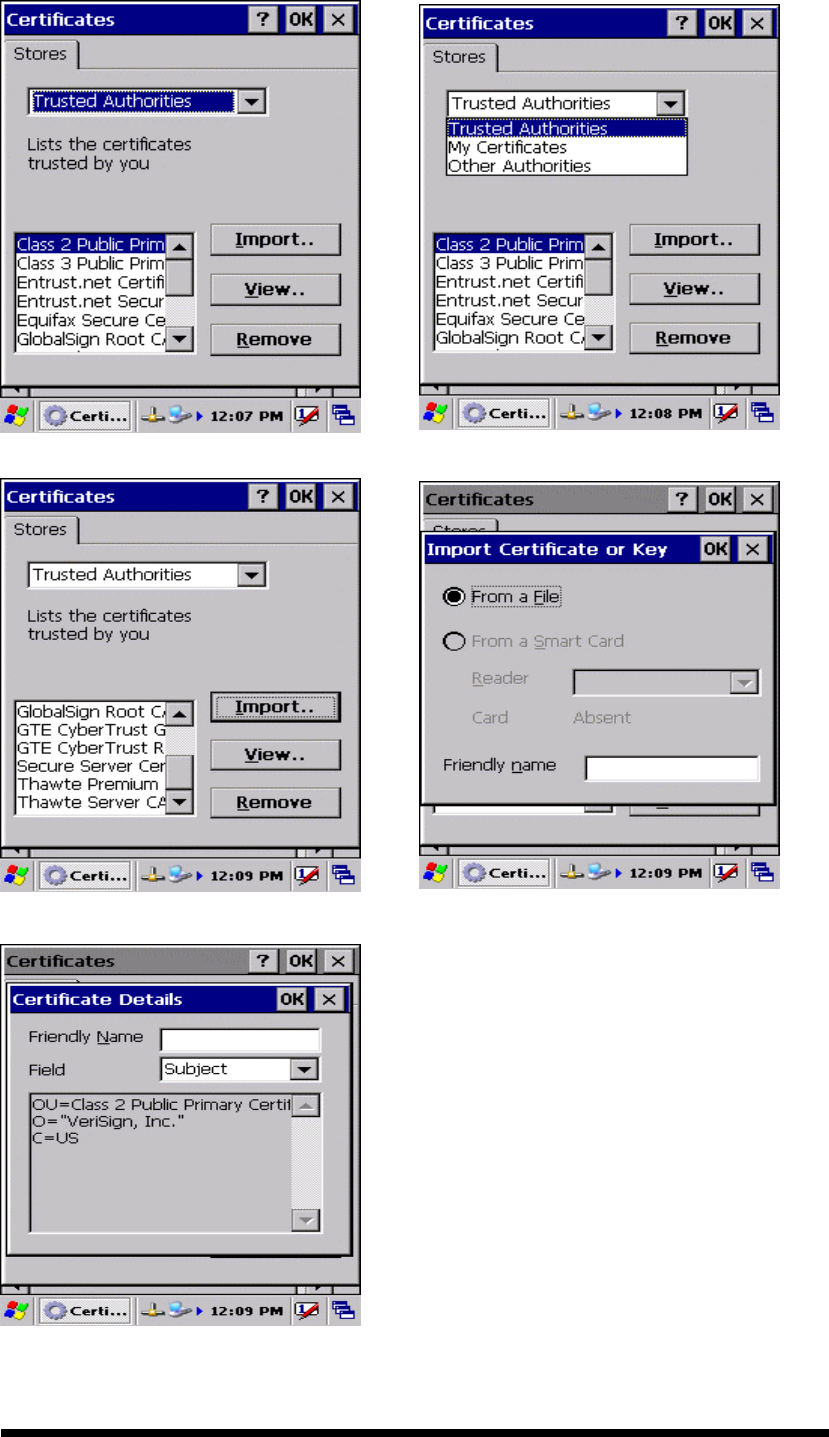 prescribed period of time. Windows CE manages multiple certificate stores.
