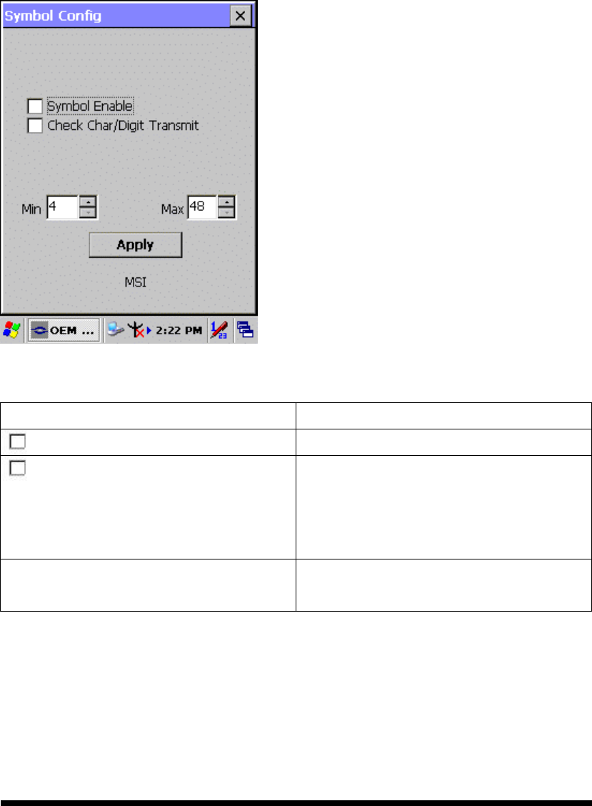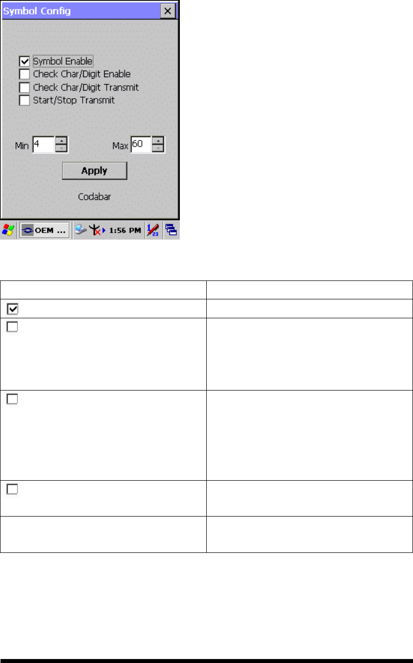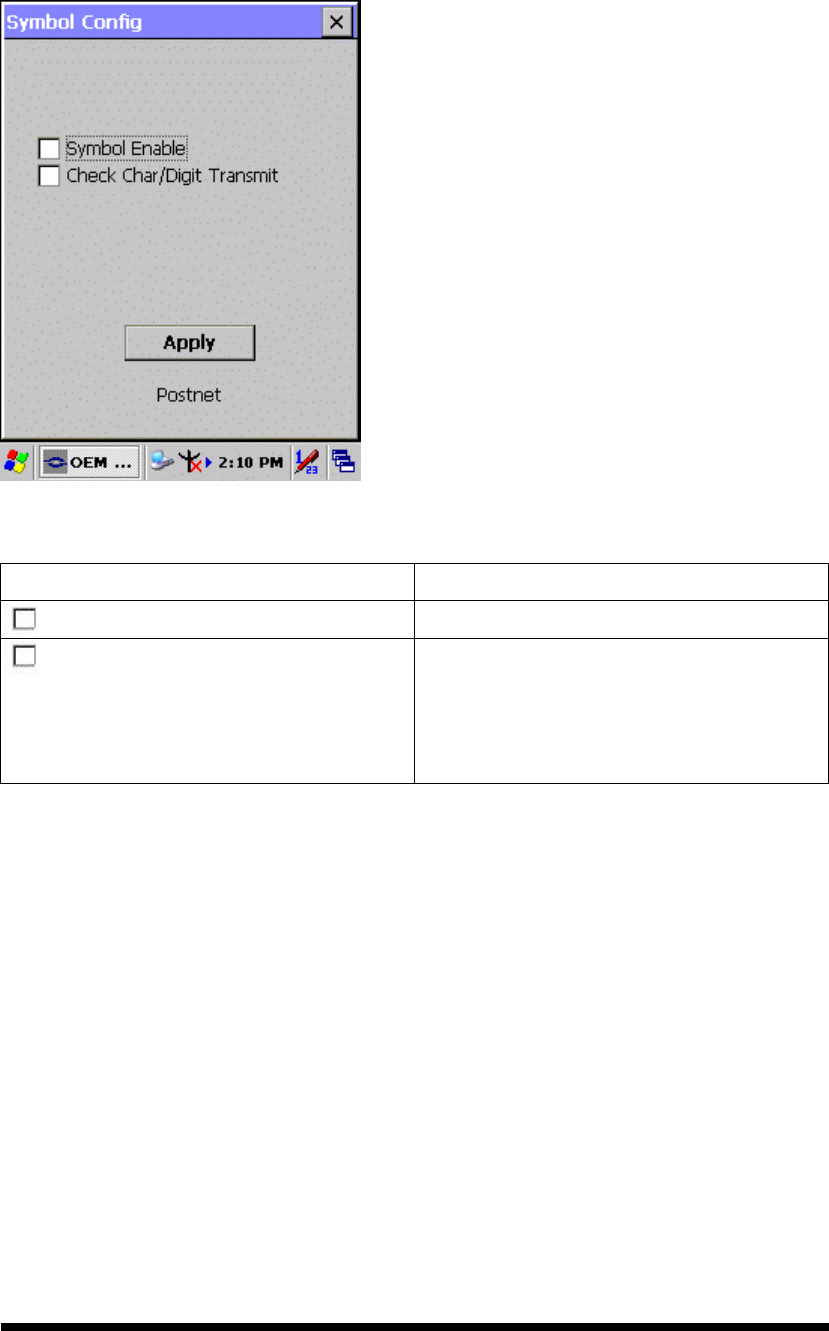 Check Char/Digit Transmit The scanner will only read US Postnet