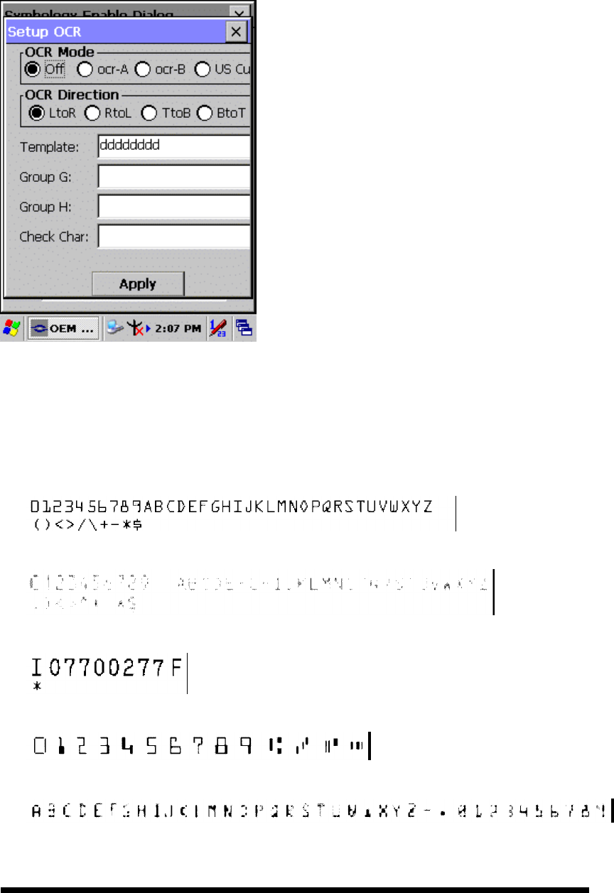 Note: Reading more than three rows of OCR is not recommended. Contact the factory