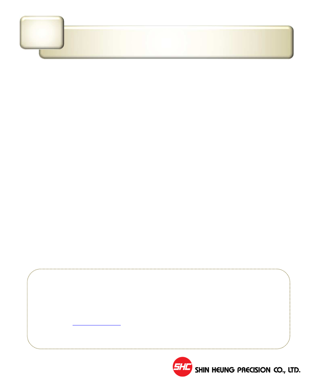 • Shin Heung Precision reserves the right to change/modify this user’s manual without prior