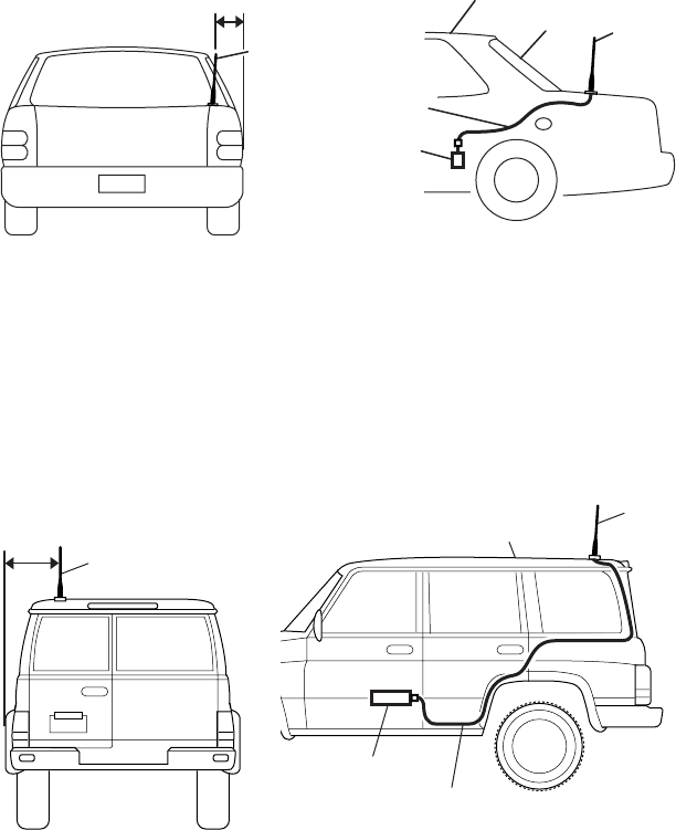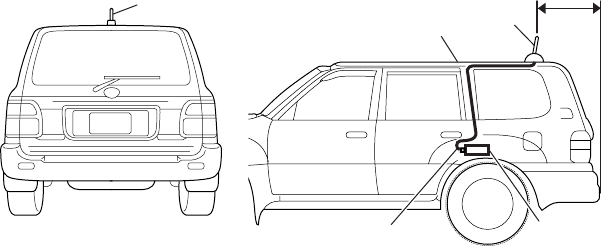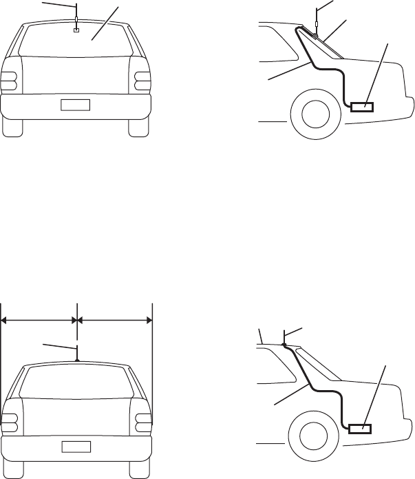 Install the antenna near the roof top rear and centered as shown in the diagram