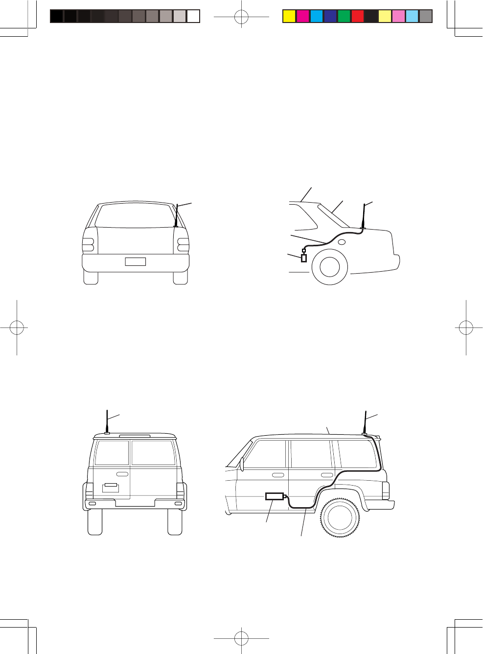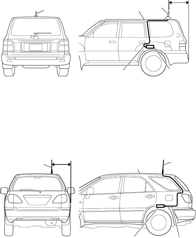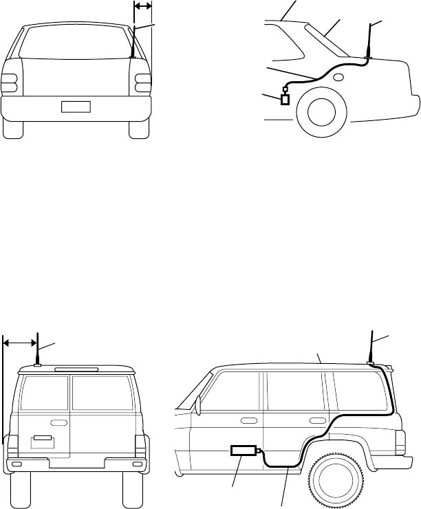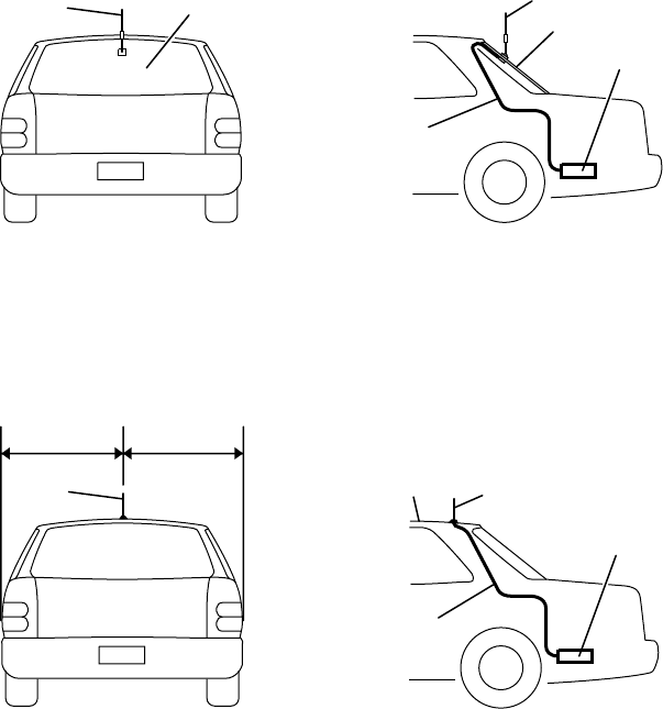 Install the antenna near the roof top rear and centered as shown in the diagram below.