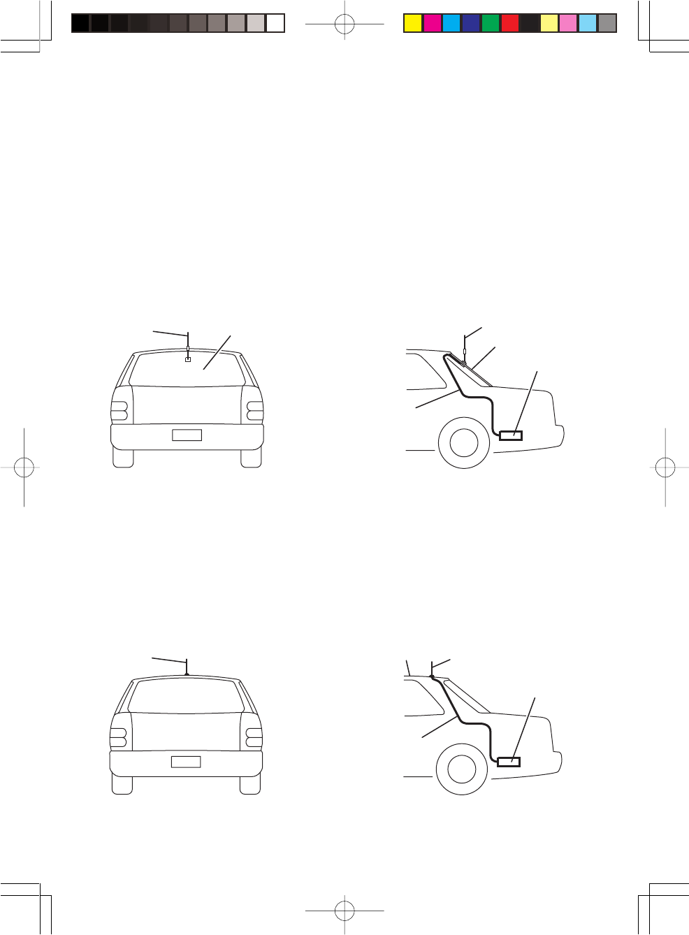 Install the antenna near the roof top rear and centered as shown in the diagram