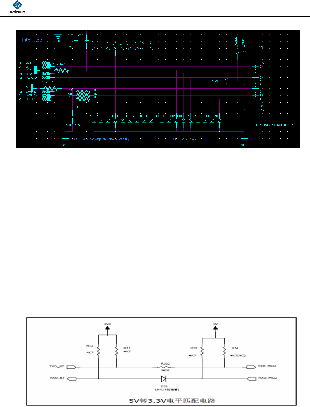 2.如果主机 MCU 是 3.3V 工作,则也需增加串接 470R-1K 电阻匹配设计,避免出现电压不匹配工