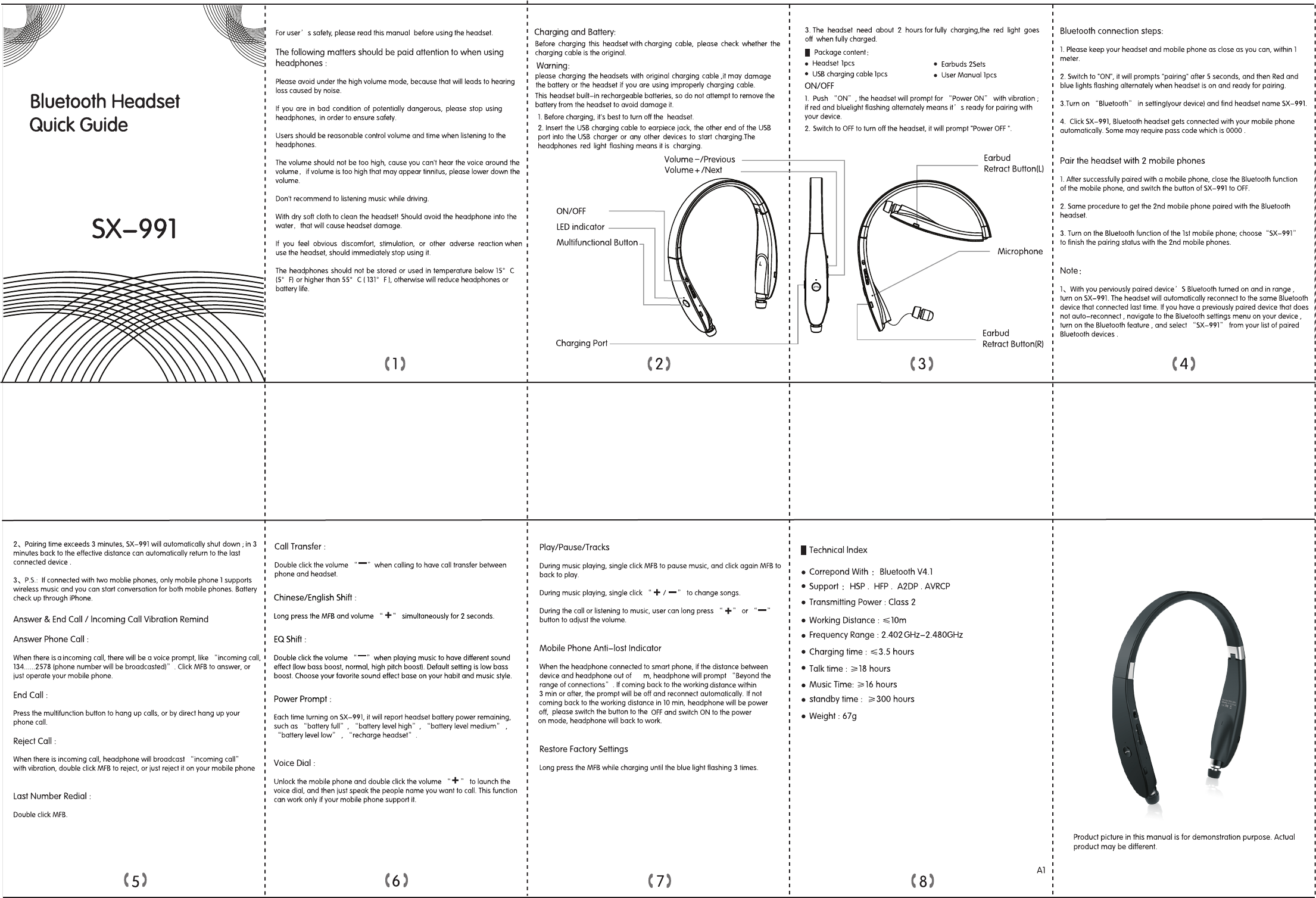 Shuaixian Electronic Equipment SX-991 Bluetooth Headset User Manual