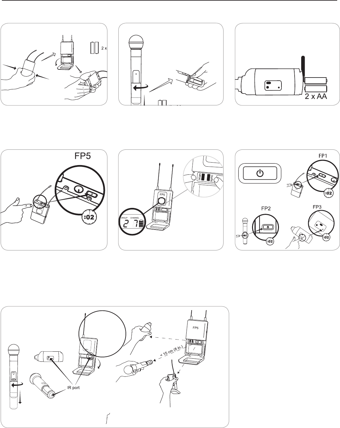 Power up the FP5 Receiver Group scan for open frequencies Power up the transmitter