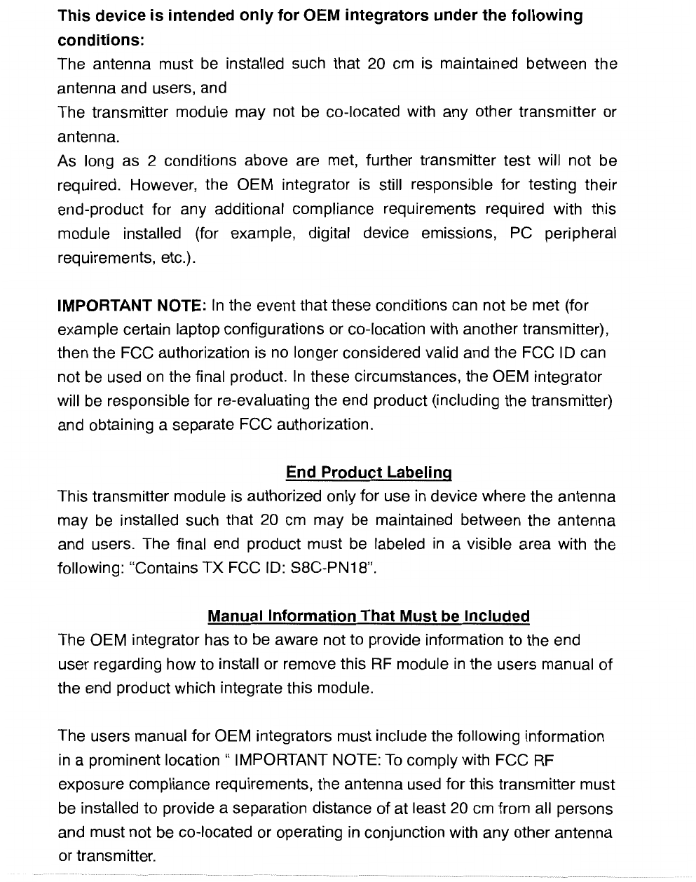 SHUTTLE INC. declared that PN18 is limited in CH1~11 from 2412 to 2462