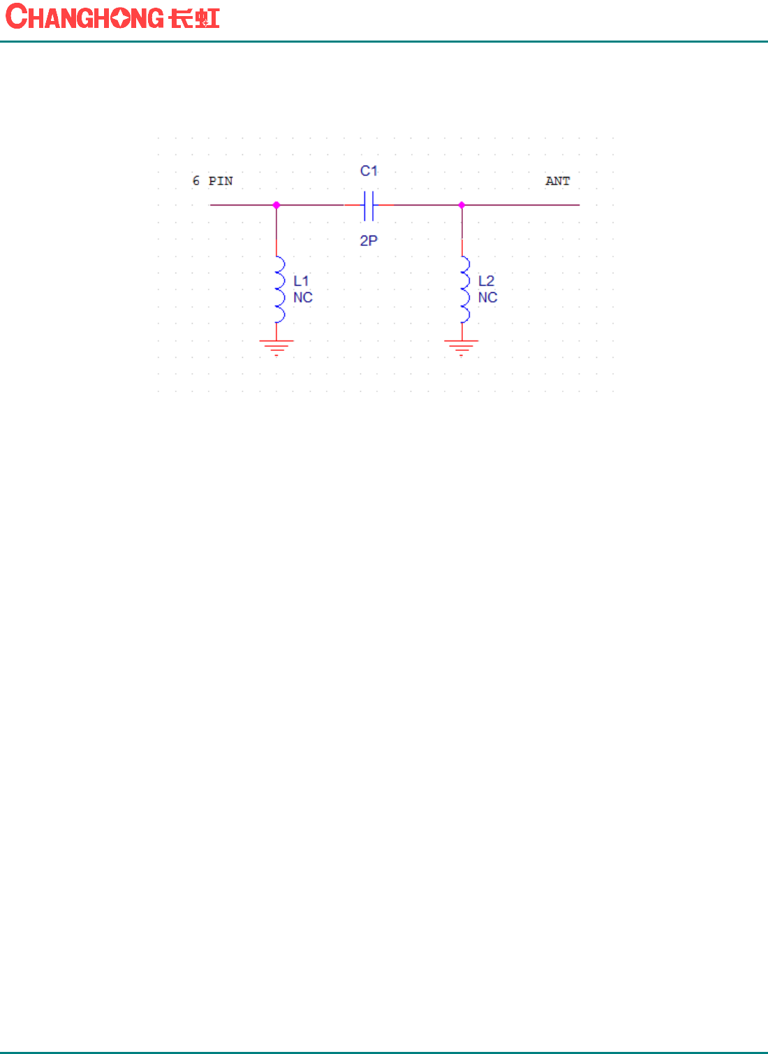 c).L1,L2,C1组成π型匹配网络并靠近天线接口设计,具体根据天线推荐及排版设计的实测效果进行调整。