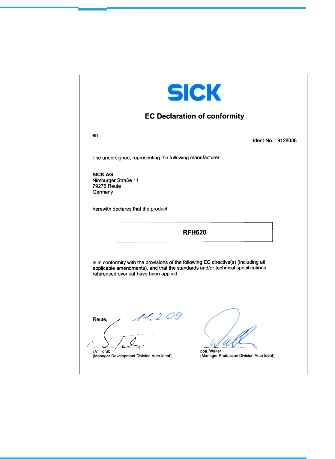 Fig. 11-2: EC Declaration of Conformity for the interrogator (page 1, scaled down version)