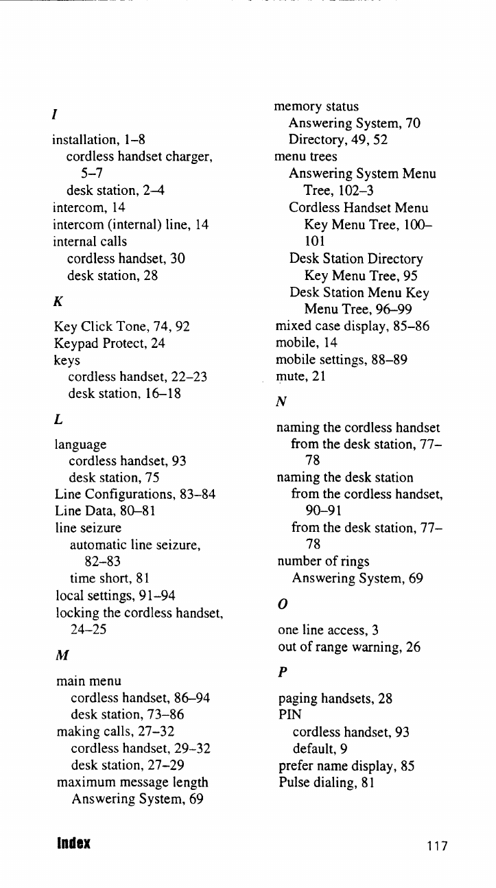 CORDLESS HANDSET'S MAIN MENU 86