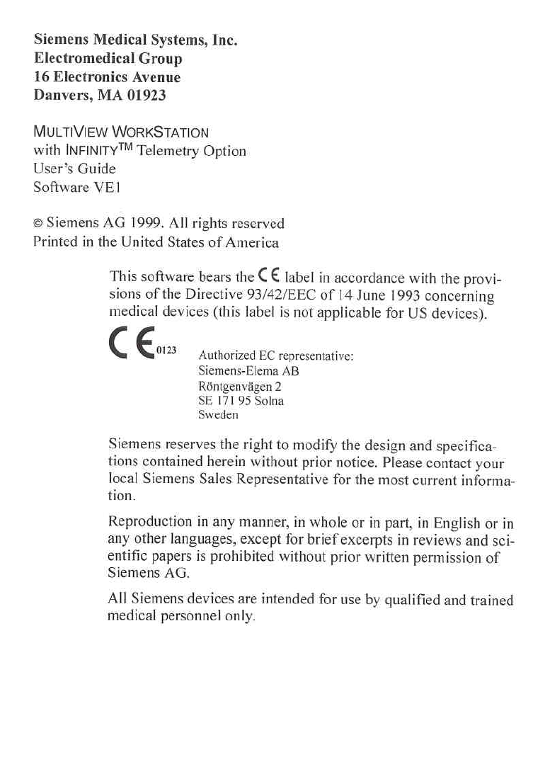 Siemens Medical Systems Bio-Telemetry Transmitter USERS GUIDE SECTION 1
