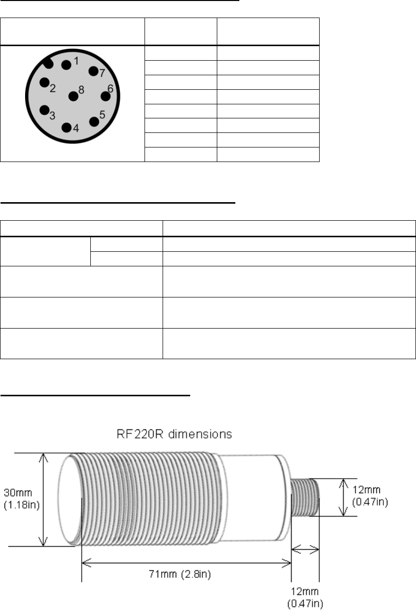 Pin assignment RF220R (RS422 interface)