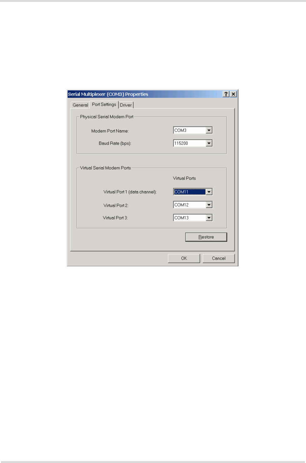 in Section 4.1. The setting is only needed to open the virtual multiplex channels on the virtual COM port assigned