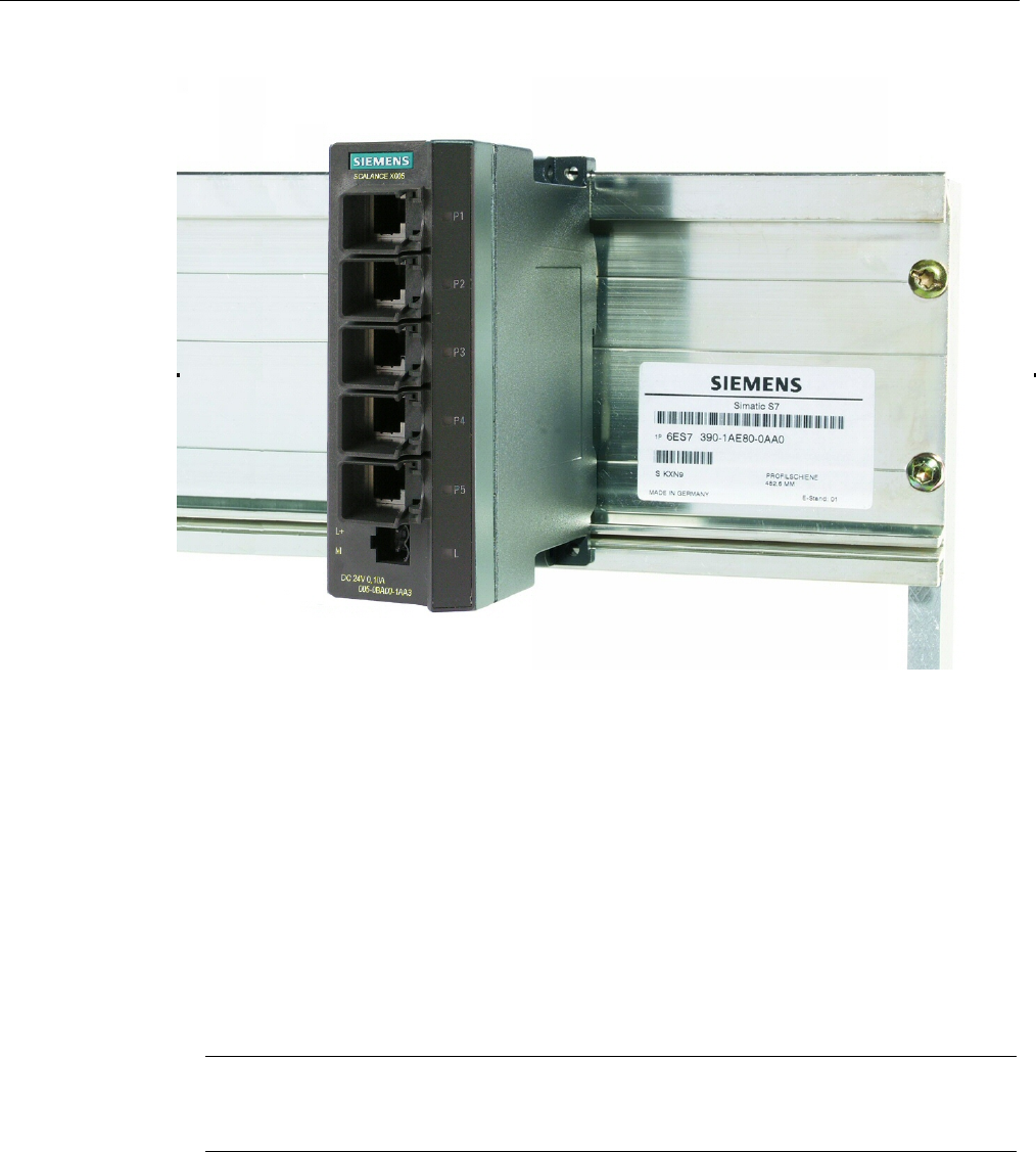 Figure 5-3 SCALANCE X005 installation on a SIMATIC S7-300 standard rail