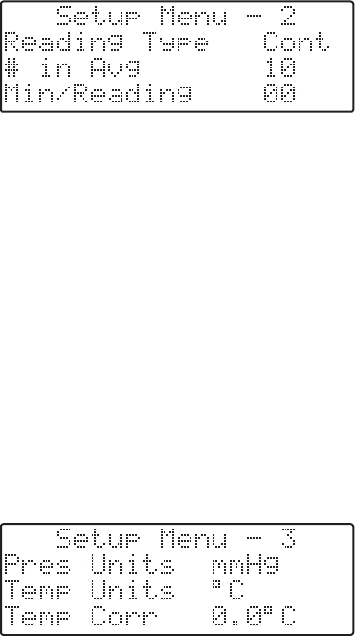8.7 Setup Menu 2, Reading Type, # in Average, Minutes/Reading 21
