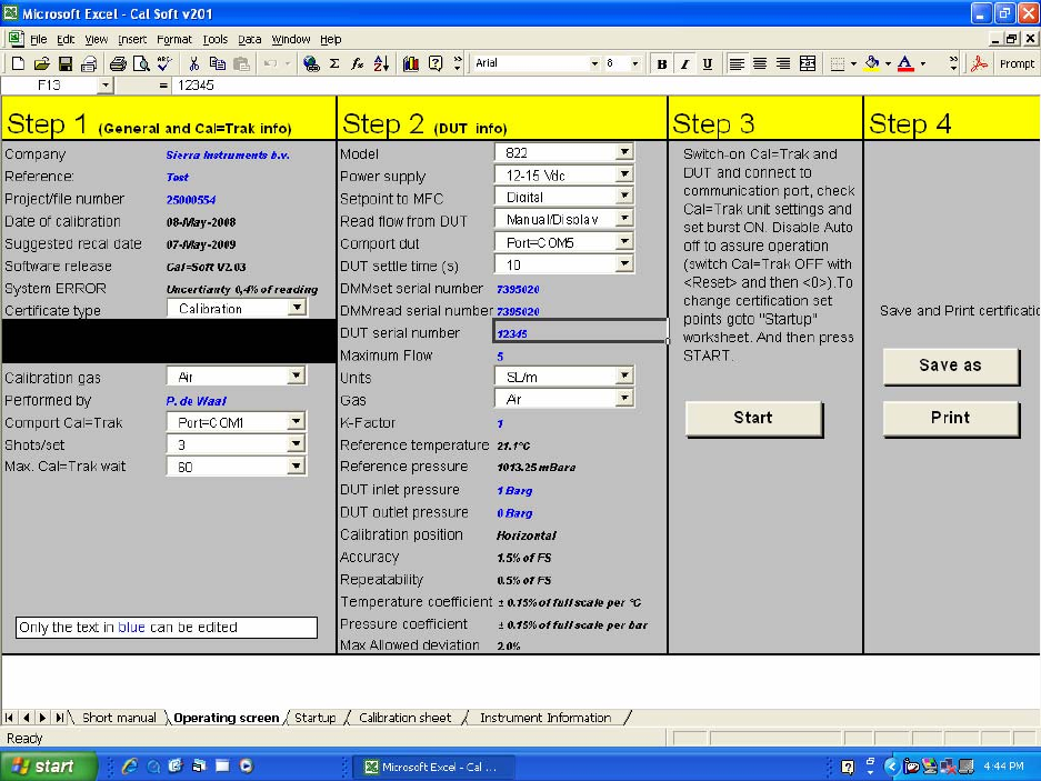 proper gas flows and ask you to input the data from your DUT at the proper intervals. Follow the instructions on the screen until all white