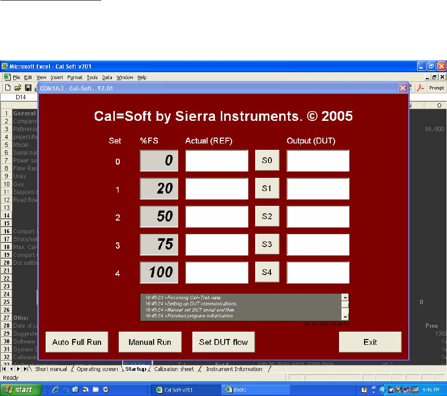 calibration. The squares named Auto Full Run, Manual Run and Set DUT Flow will be dark and will not function.