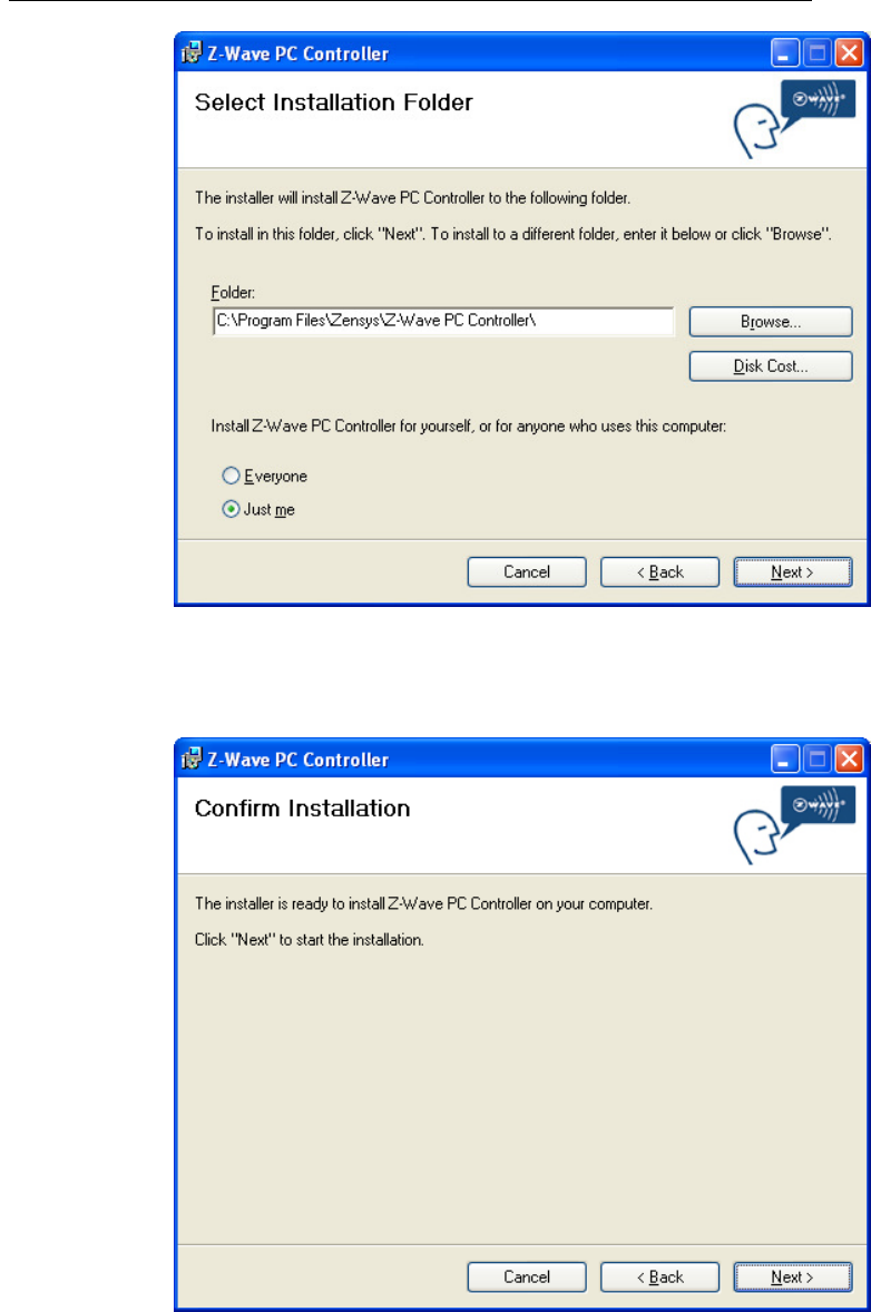 3. Select the installation folder and who should be able to use the Z-Wave PC Controller