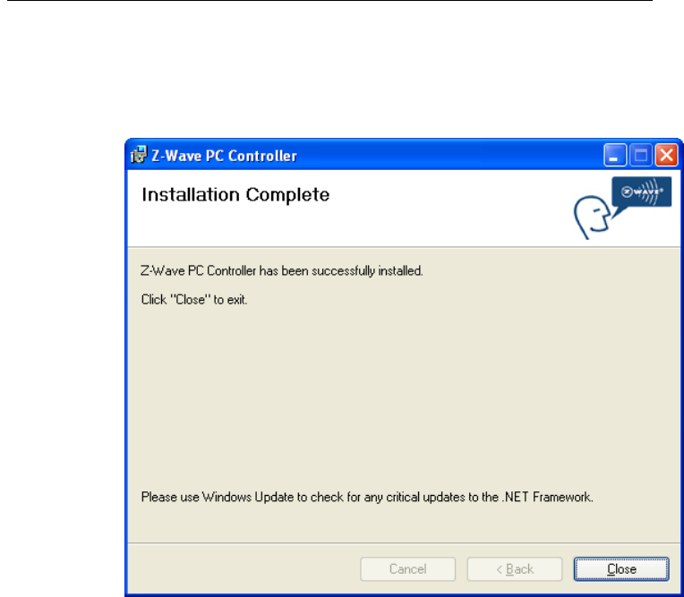 Figure 3. Confirmation page of Z-Wave PC Controller installation