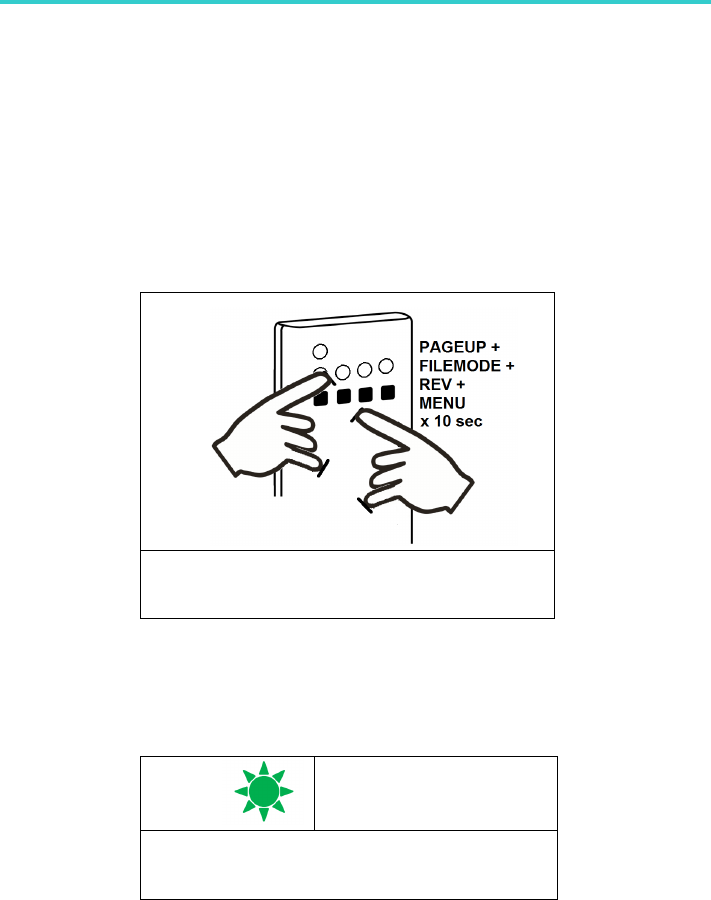 Step 2. Press-and-Hold PAGEUP+FILEMODE+REV+MENU for 10 sec