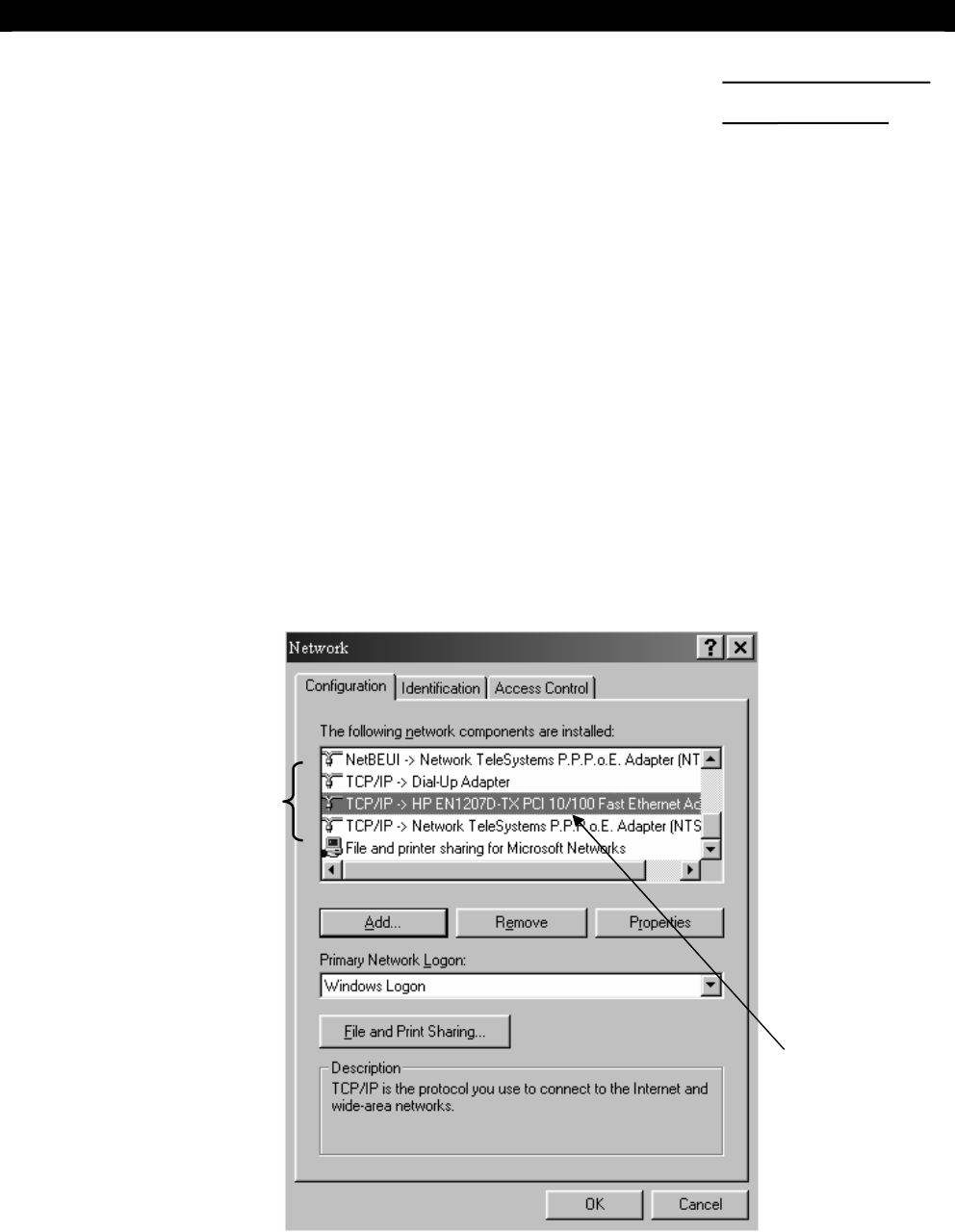 TCP/IP-> HP EN1207D-TX PCI 10/100 Fast