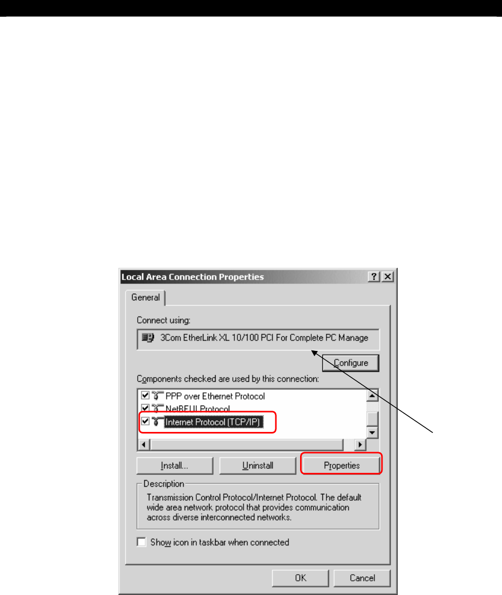 Step 3: Choose TCP/IP->[Your Ethernet card name] > Click Properties > IP address, enter an IP