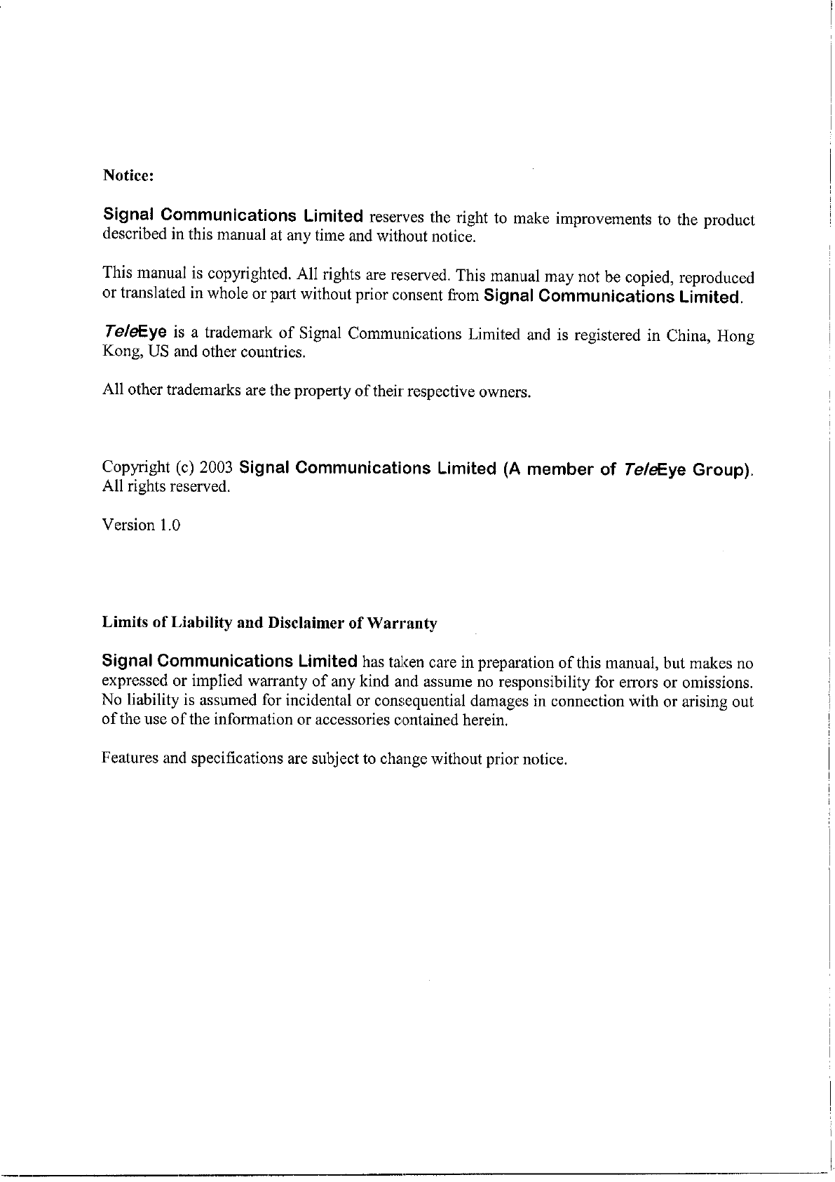 Signal Communications SCVX-030821 TeleEye III+ VX Series User Manual